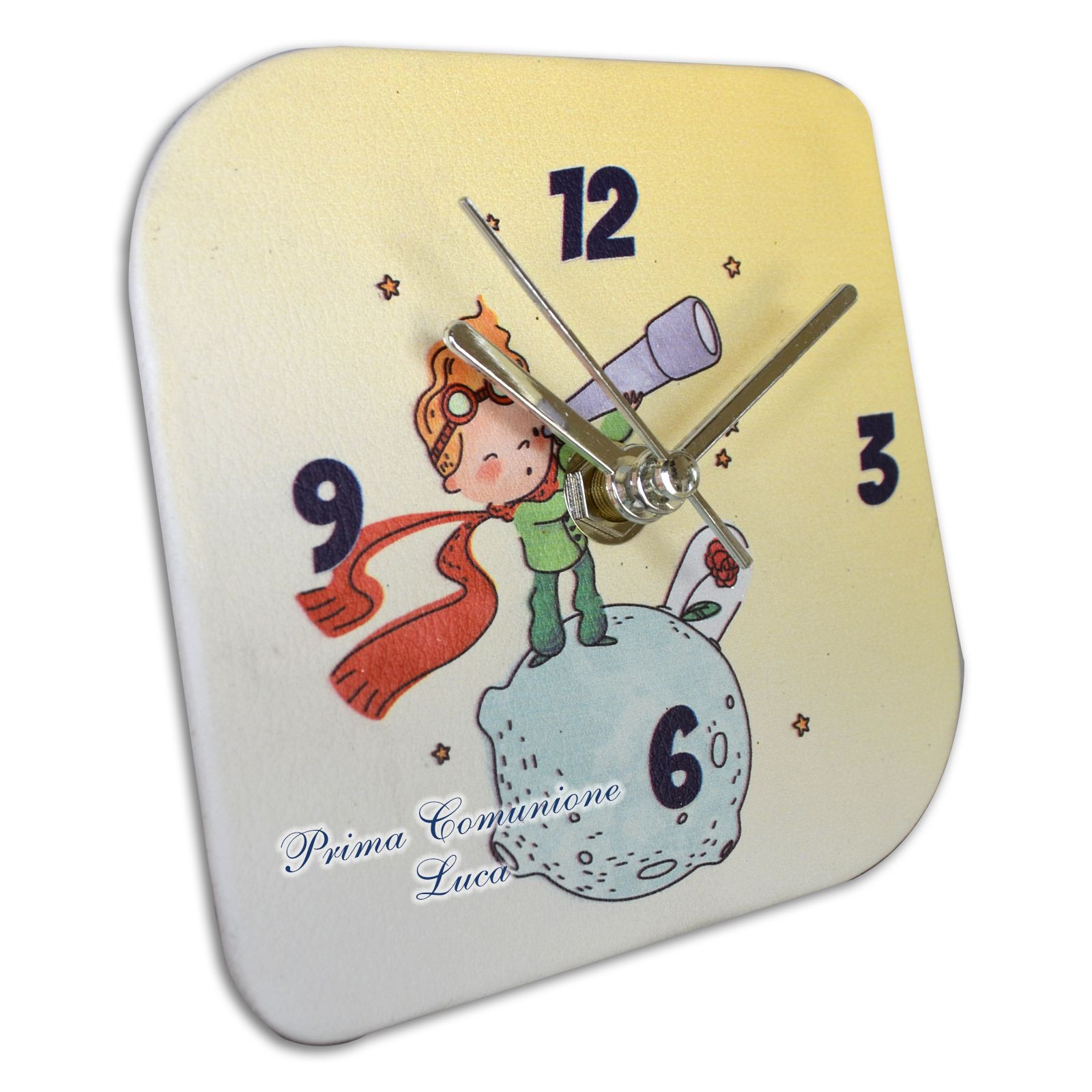 Celebra la Comunione con questa speciale bomboniera - un orologio in legno rivestito di ecopelle con la stampa del Piccolo Principe, personalizzabile con la data e il nome dell'evento.