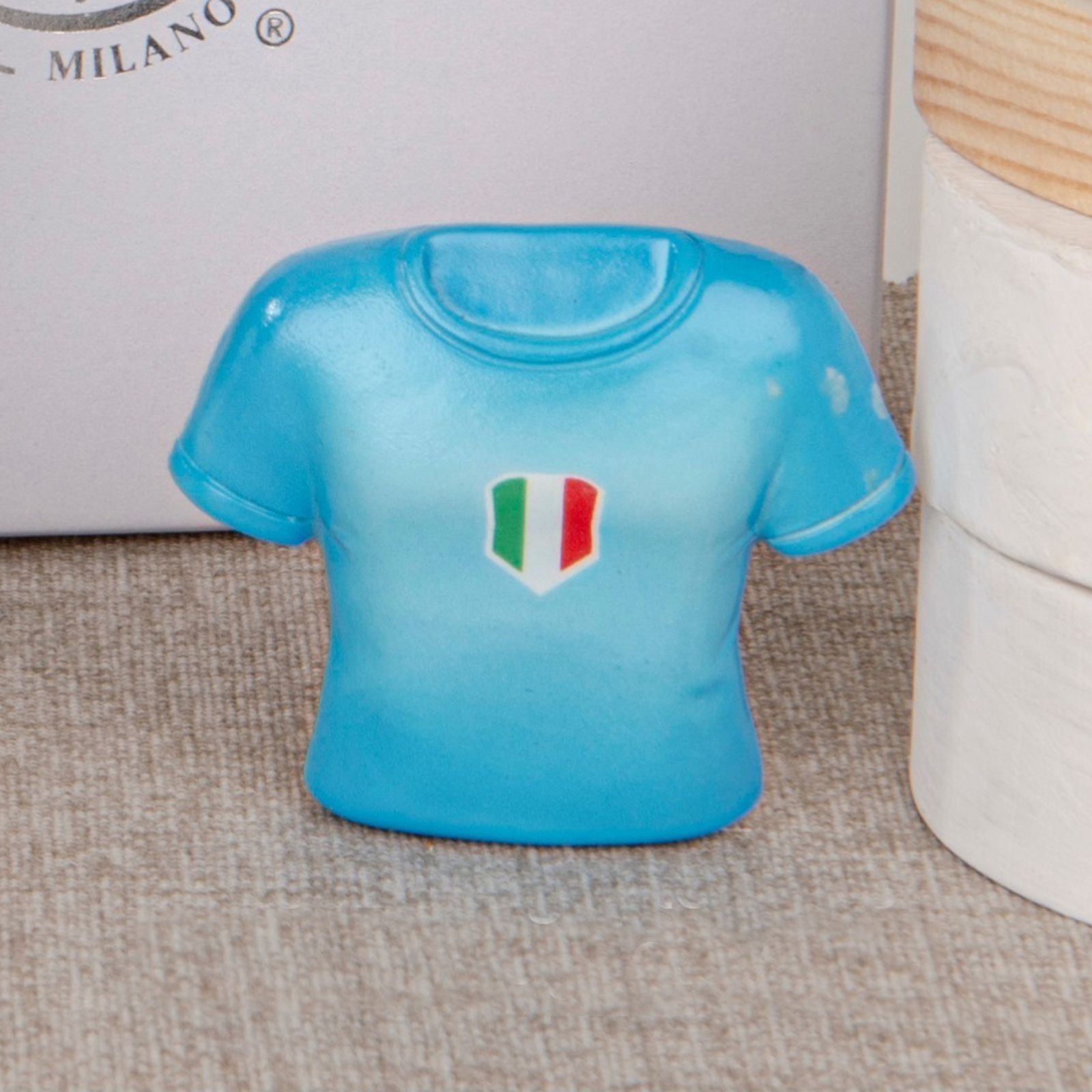 Regala il Magnete maglia da calciatore nazionale con bandiera italiana per un regalo unico e originale, perfetto per ogni evento. Le dimensioni sono di circa 5 cm e la forma raffigura una tradizionale maglia da giocatore di calcio, con una bandiera italiana ben visibile. Realizzato in resistente resina di colore azzurro, è un gadget perfetto per una festa a tema calcio o come pensierino per un'occasione speciale come una prima comunione, santa cresima, 18 anni o un compleanno. Si può utilizzare anche come segnaposto o come confettata originale per il tuo bimbo che ha la passione per il calcio. Questo particolare magnete a forma di maglia da calciatore è un regalo simpatico e allegro, che renderà felici anche i tifosi più accaniti della nostra nazionale e colorerà ogni evento con l'amata bandiera italiana.