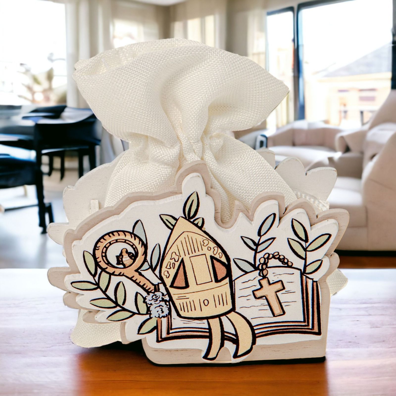 Perfetta come gadget di fine festa, addobbo tavoli o anche come segnaposto, questa bomboniera è un ottimo regalo per le tue catechiste, i tuoi amici o qualsiasi altro invitato che parteciperà alla tua cerimonia.