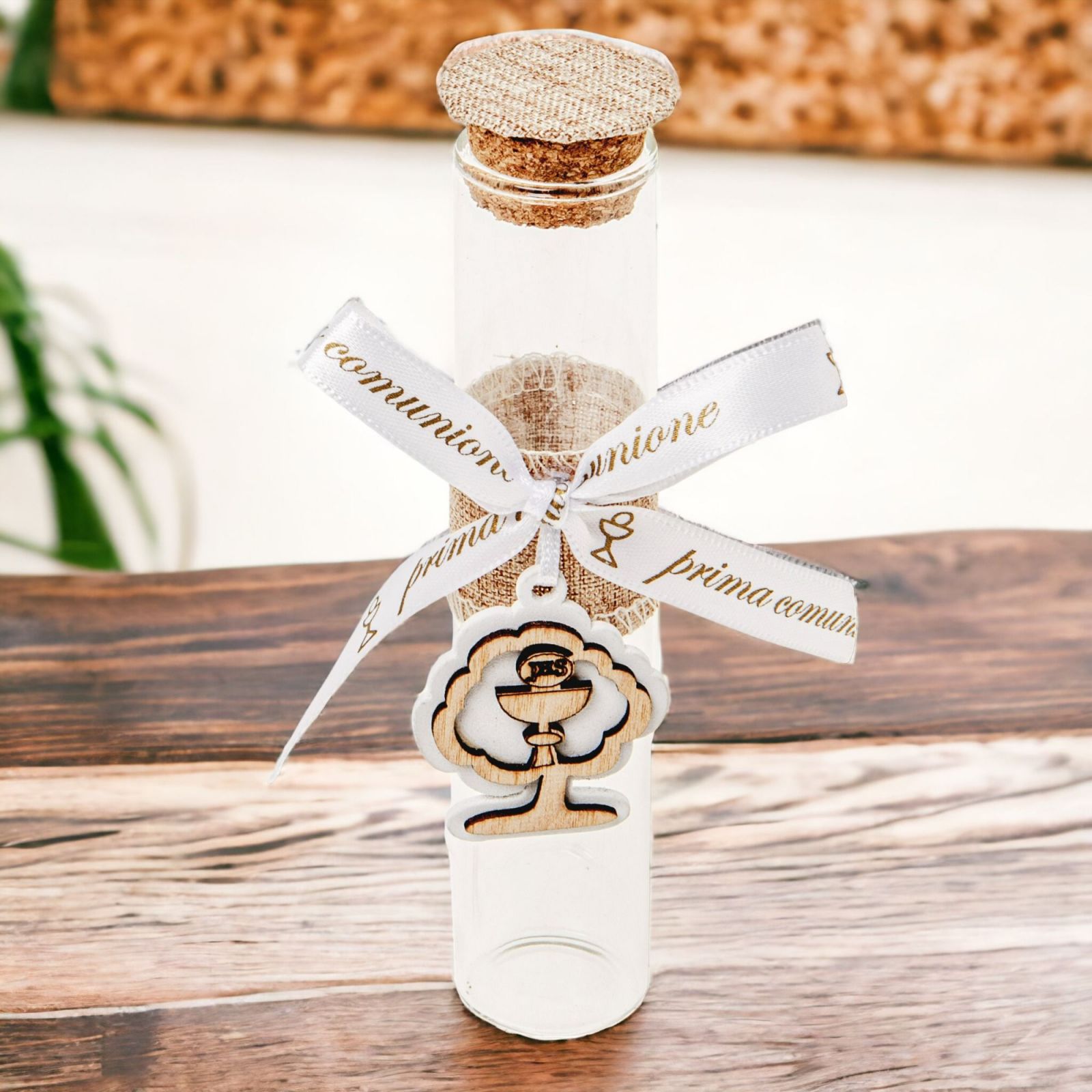 Regalare questa bomboniera ai tuoi invitati significa sottolineare il loro speciale legame con la Prima Comunione e offrire un ricordo che resterà sempre impresso nel loro cuore. La fiala potrà essere riempita con i confetti per offrire un tocco di dolcezza a tutti gli invitati.