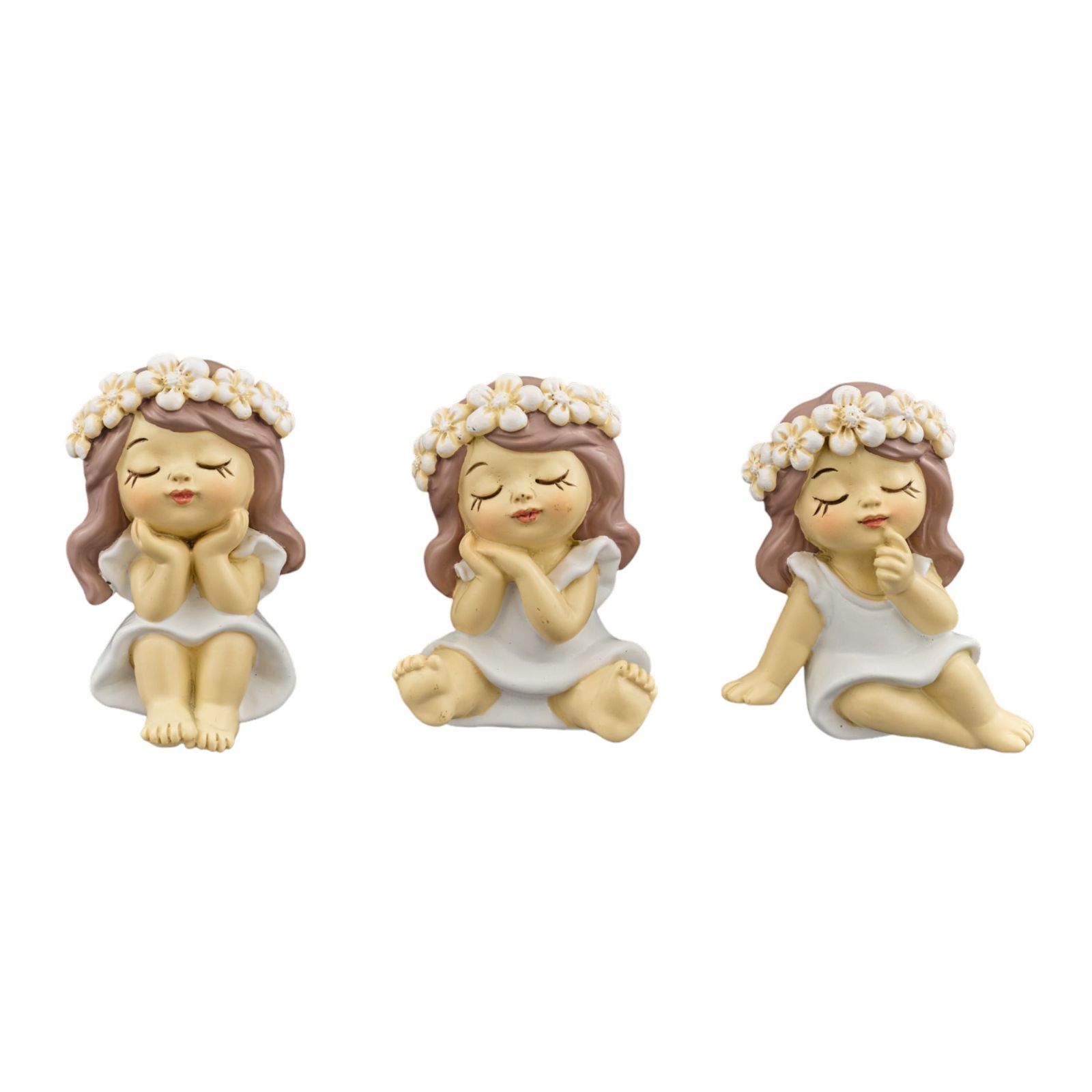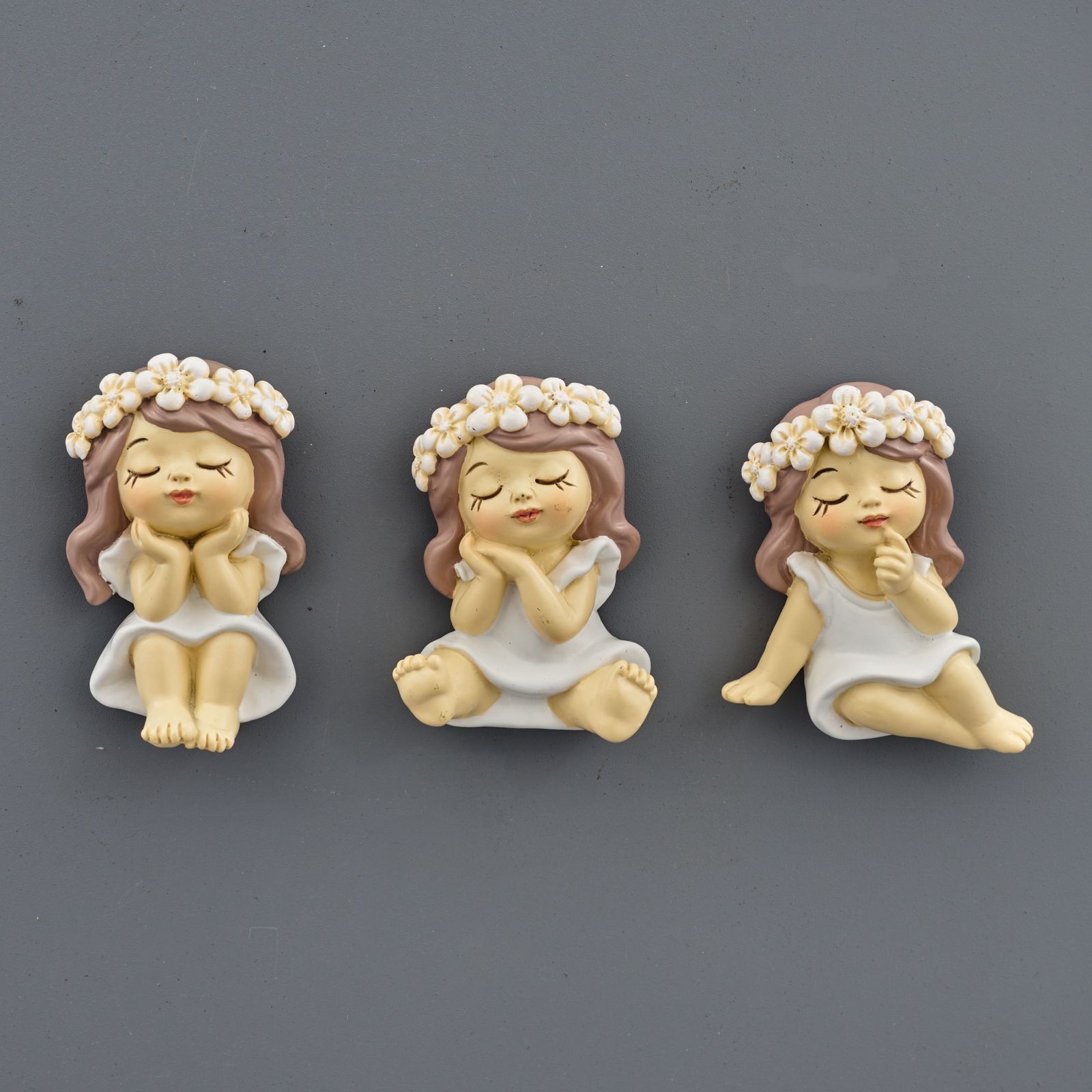 Un dono che unisce tenerezza e stile, adatto per un’occasione importante come la prima comunione di una femminuccia: è il magnete a forma di bimba seduta con vestitino bianco e una graziosa coroncina di fiori sul capo, assortita in tre modelli di posizione. Un ricordino dolce e prezioso, che i destinatari ricorderanno a lungo.