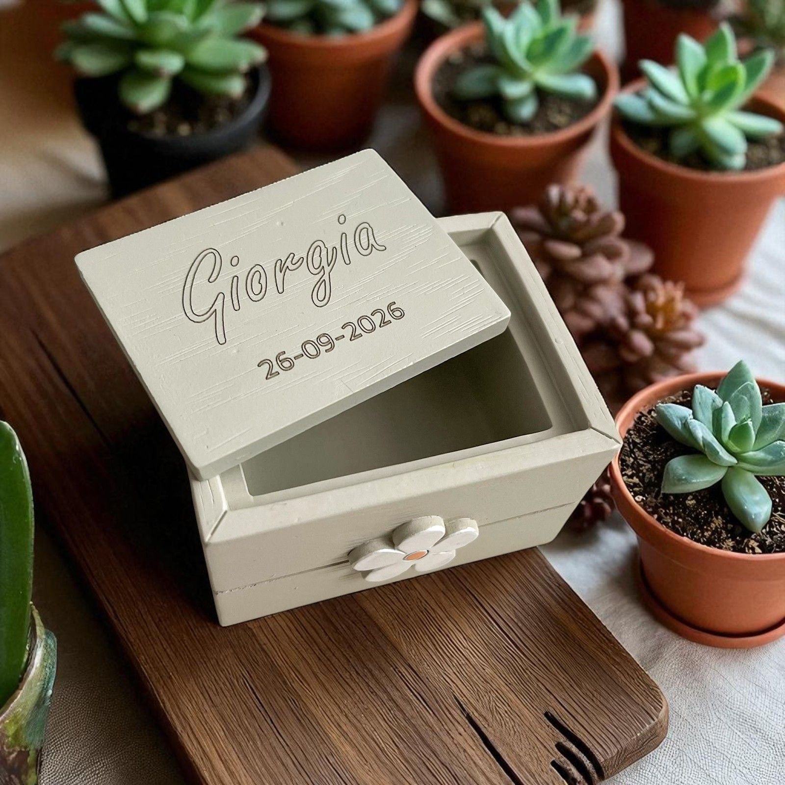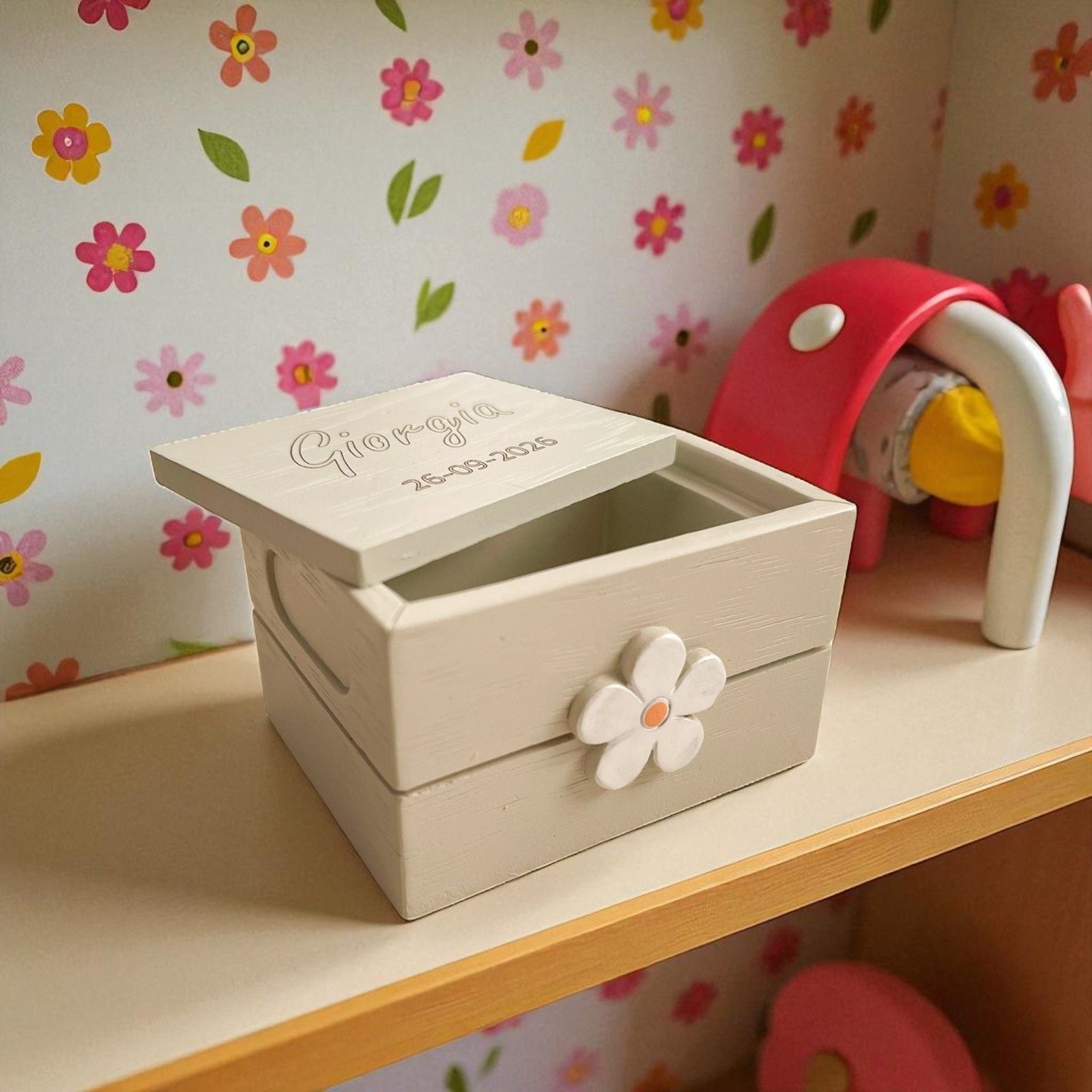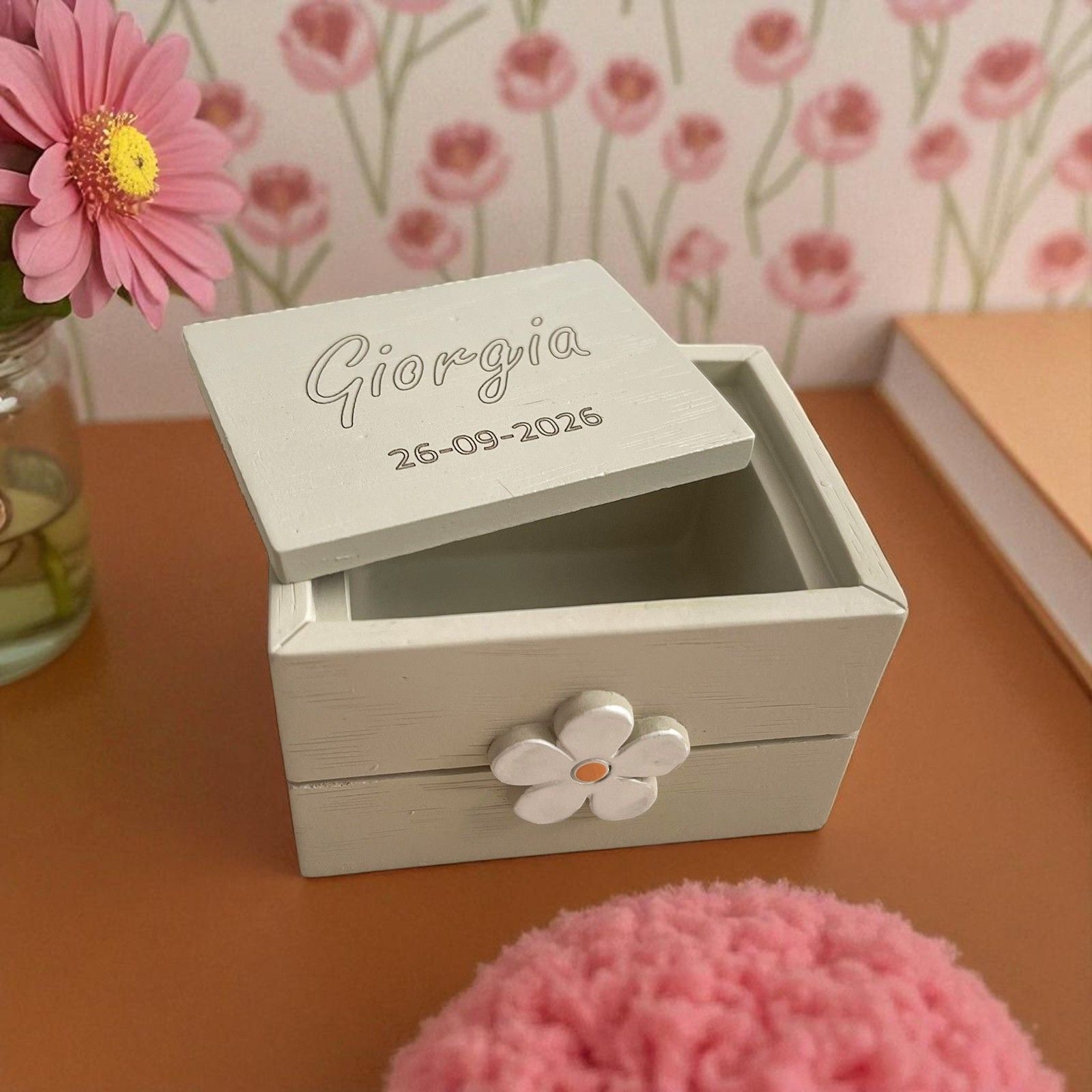 La Scatolina Portaconfetti è la scelta perfetta per chi desidera un dettaglio semplice ma ricercato. Con una margherita bianca in rilievo sul fronte, si distingue per il suo design delicato e raffinato, ideale per contenere confetti, caramelle o piccoli regali che accompagneranno i tuoi momenti speciali. Le dimensioni compatte di circa 6 × 3 cm la rendono pratica e versatile, perfetta come bomboniera o come segnaposto originale.
