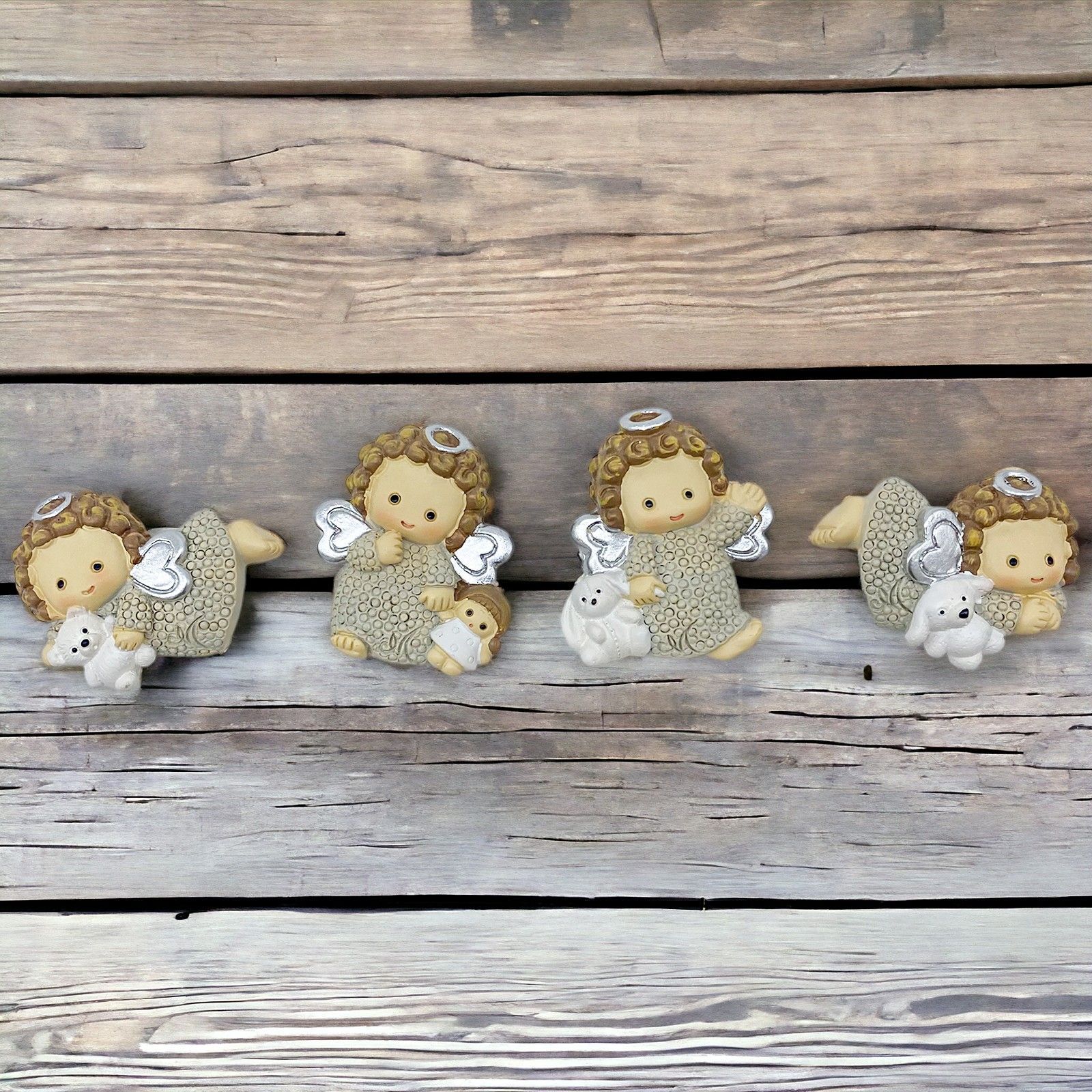 Celebra momenti speciali con le nostre mini calamite con angioletto assortito in 4 modelli. Perfette per bomboniere originali e particolari in occasione di battesimi e comunioni. Realizzate in resina di alta qualità, con dimensioni di 4.5x3.5 CM e nei colori tortora e argento.