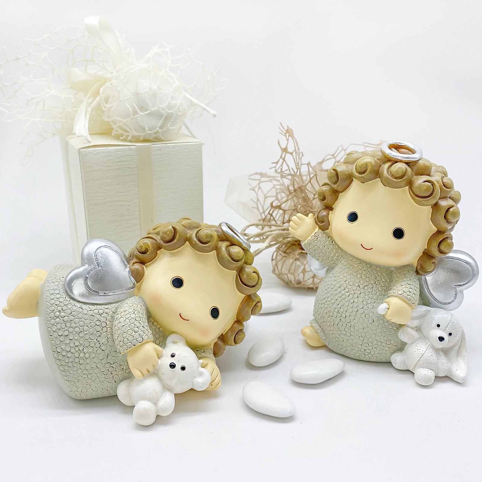 Esprimi il tuo affetto in modo unico e memorabile con il nostro adorabile salvadanaio a forma di angioletto, disponibile in due varianti assortite. Perfetto per celebrare momenti speciali come il Battesimo e la Comunione, questo pensierino delicato cattura l'essenza della gioia e della spiritualità.