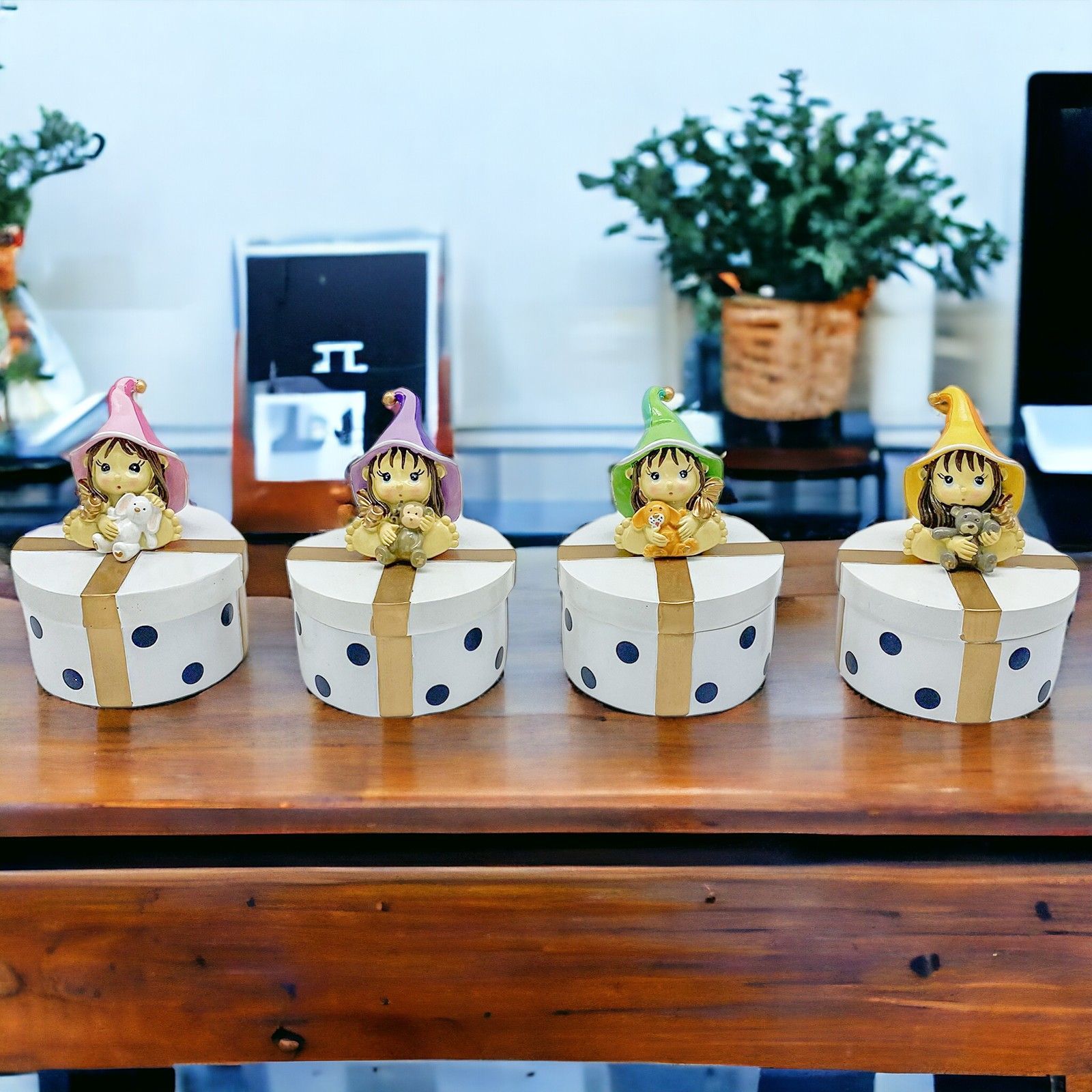Immergiti nel regno della magia con la Scatolina per Confetti con Streghetta, un piccolo scrigno di meraviglie creato per donare un tocco speciale a ogni tua festa. Assortita in 4 modelli, questa bomboniera in resina lucida porterà una nota di dolcezza e mistero a battesimi, comunioni, e compleanni.