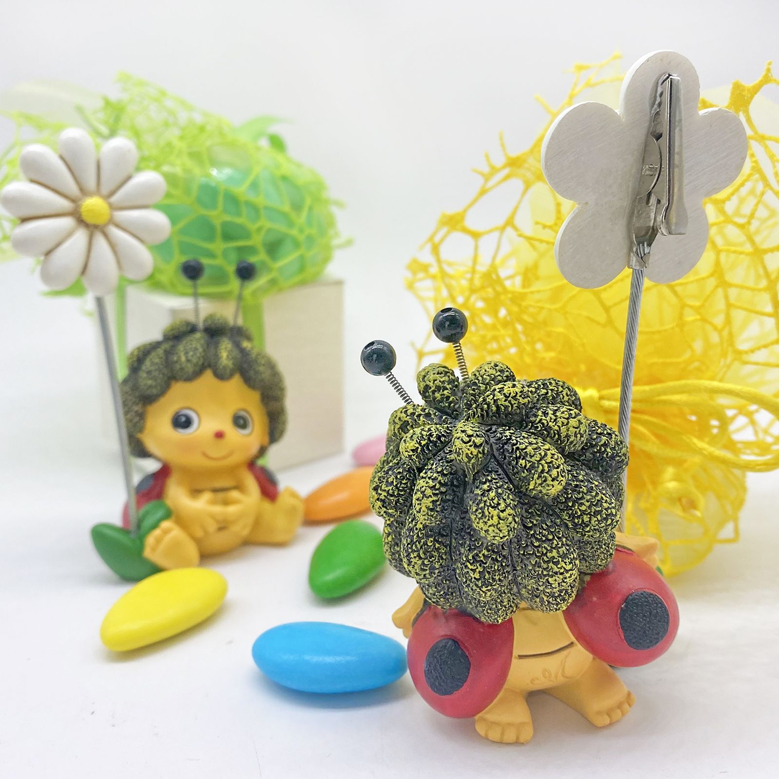 I dettagli curati delle coccinelle, realizzate in resina dai colori pastello, aggiungono un tocco di eleganza e originalità. Ognuna porta con sé la promessa di un ricordo speciale, arricchendo l'atmosfera con la sua presenza vivace. Scegliendo i MemoClip Coccinella, stai selezionando non solo un pratico regalo, ma un pezzo d'arte che trasforma ogni evento in un'esperienza unica e indimenticabile.