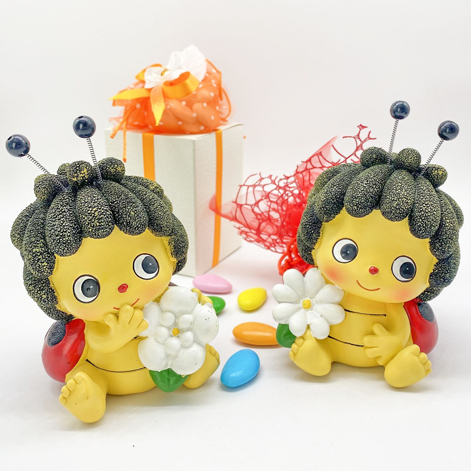 Questo salvadanaio coccinella presenta una caratteristica particolare: le antenne su molla che donano un tocco giocoso e unico. Disponibile in due varianti, questo regalo è pensato per tutte le bimbe, bambine e partecipanti di ogni età. Rappresenta non solo un ricordo, ma un pensierino speciale che si distingue per la sua dolcezza e la sua originalità.