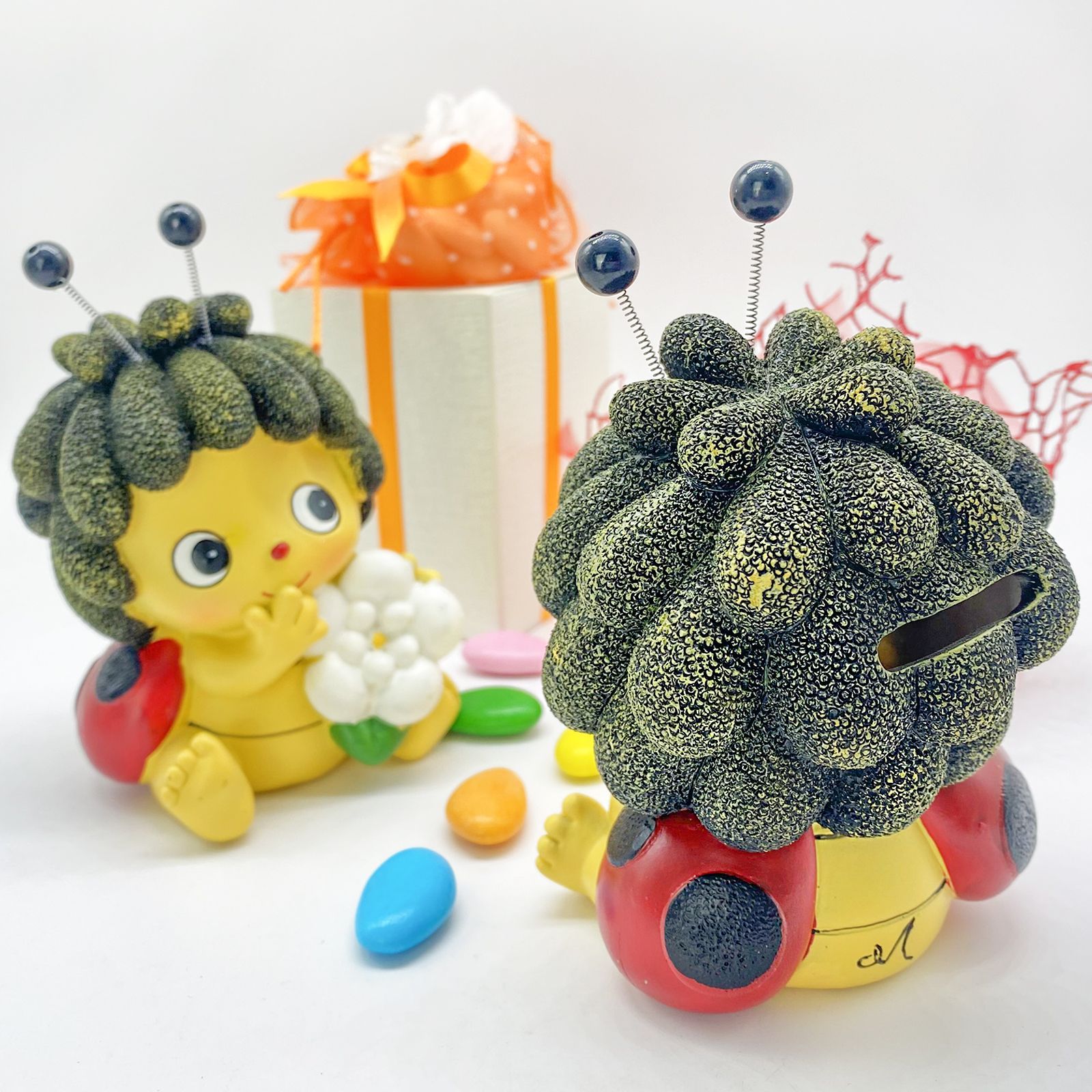 Aggiungi un tocco unico di dolcezza al tuo evento speciale! Il nostro salvadanaio a forma di tenera coccinella, assortito in due varianti, è l'opzione perfetta per sorprendere tutti gli invitati al battesimo, compleanno o comunione. Con dimensioni di circa 14 x 9 CM e realizzato in resina dai colori pastello, questo regalo unico aggiungerà allegria e originalità al tuo momento speciale.