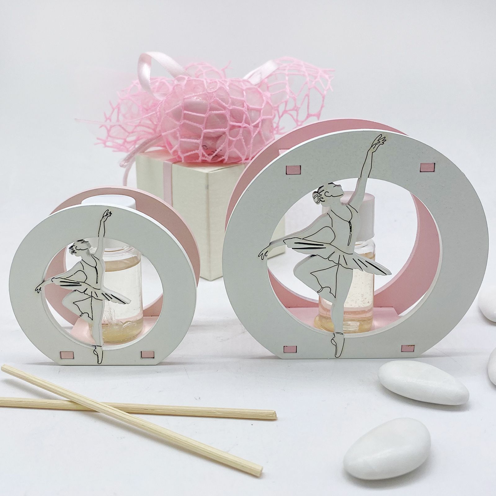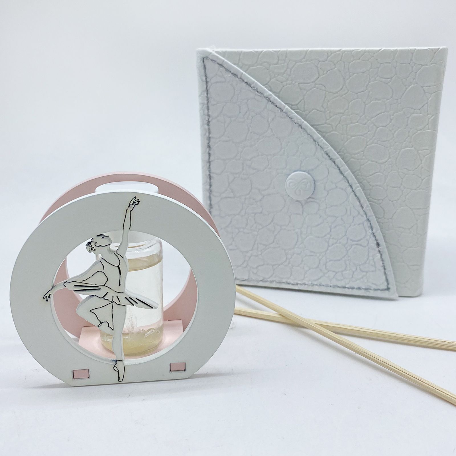 Trasforma la comunione in un evento indimenticabile con il nostro diffusore di essenza semicircolare, impreziosito da un elegante intaglio di una ballerina di danza classica. Questo accessorio unico è perfetto per chi cerca una bomboniera che unisce raffinatezza e originalità.