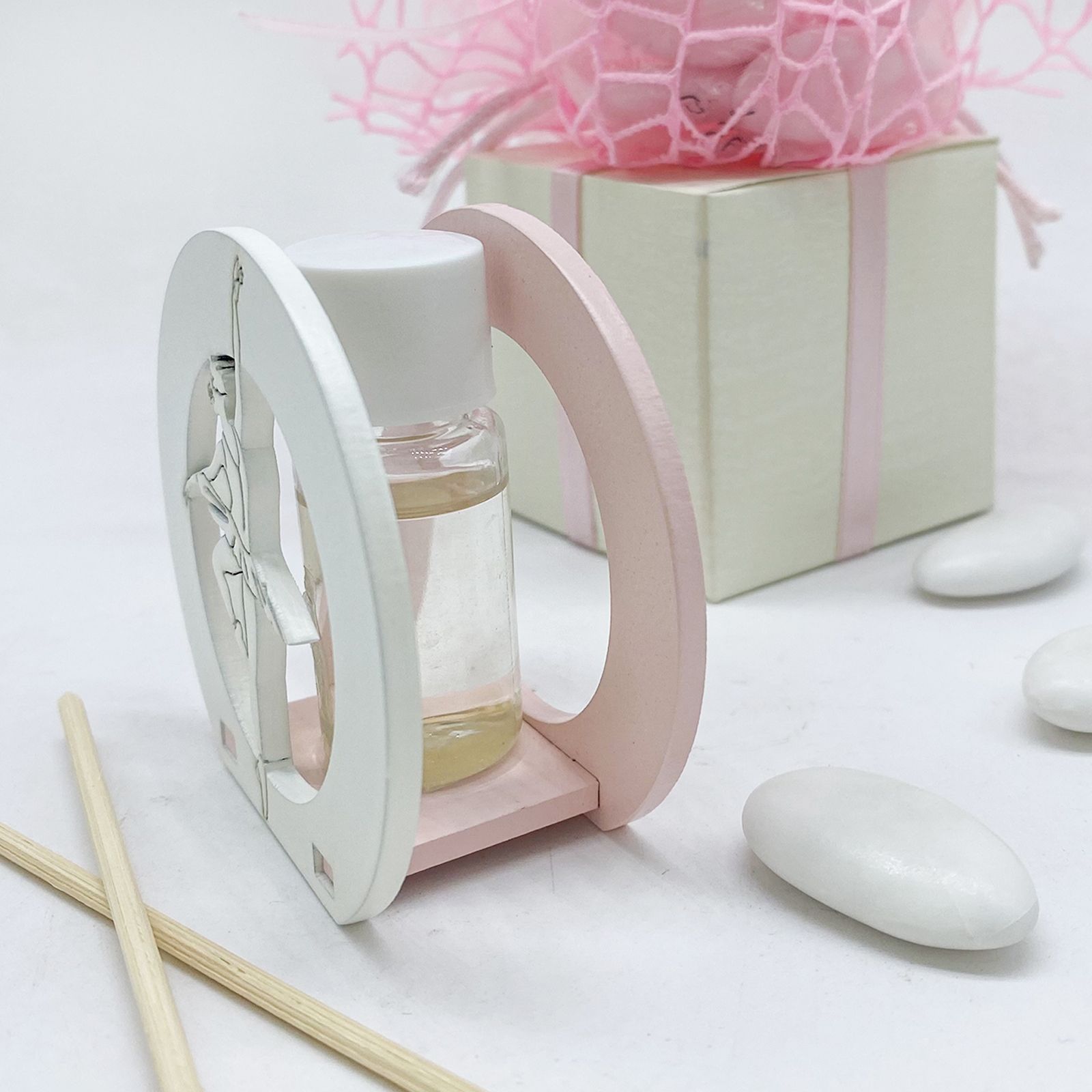 Realizzato in legno e disponibile in due dimensioni—Standard (6 x 7 cm) e Grande (9 x 10 cm)—il diffusore è decorato con un delicato colore rosa e bianco, che aggiunge un tocco di eleganza al regalo. Ogni diffusore viene fornito completo di scatola regalo, essenza e bacchette, offrendo un pacchetto completo e raffinato.