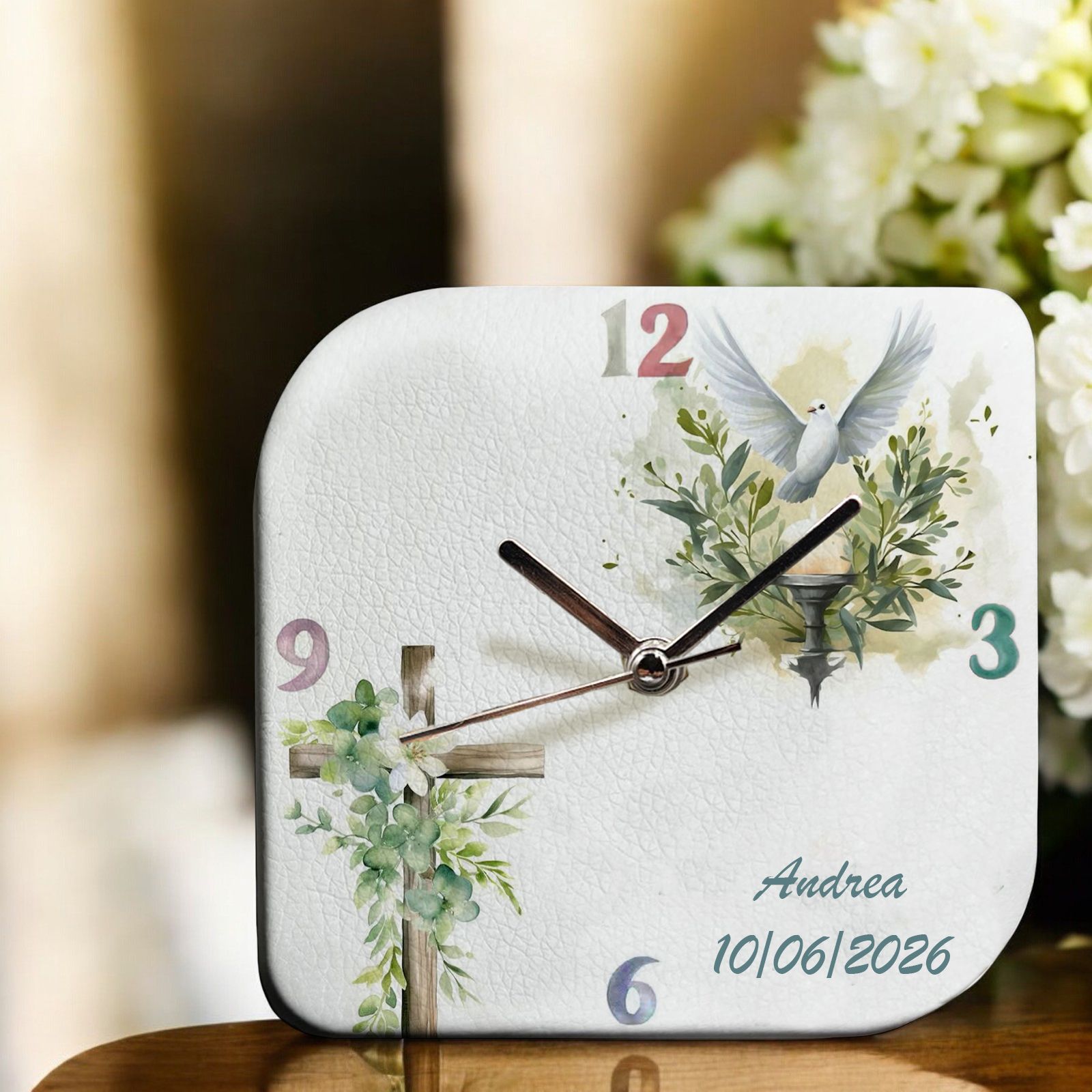 Elegante e ricco di significato, questo orologio in pregiata ecopelle, decorato con simboli sacri come la croce e la colomba, è il regalo ideale per celebrare la comunione o la cresima. Questo prodotto Made in Italy unisce qualità e stile, garantendo un dono raffinato e originale.