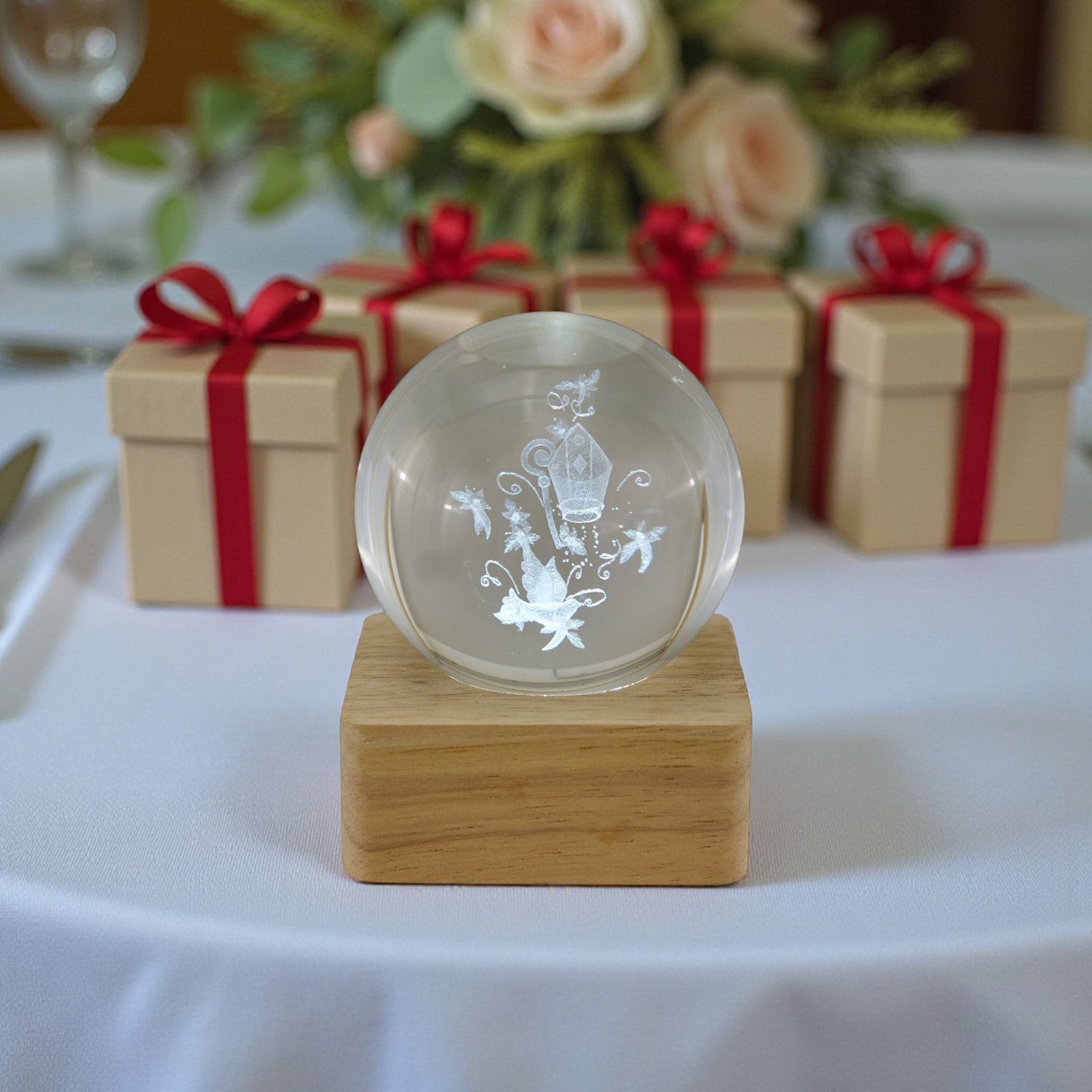 Realizzata con materiali di alta qualità, questa bomboniera combina il calore del legno naturale con l'eleganza del vetro, creando un oggetto che si integra perfettamente in qualsiasi arredamento. Scegli tra la versione per ragazza o ragazzo e fai una scelta che rispecchi la loro personalità in questo giorno così speciale.