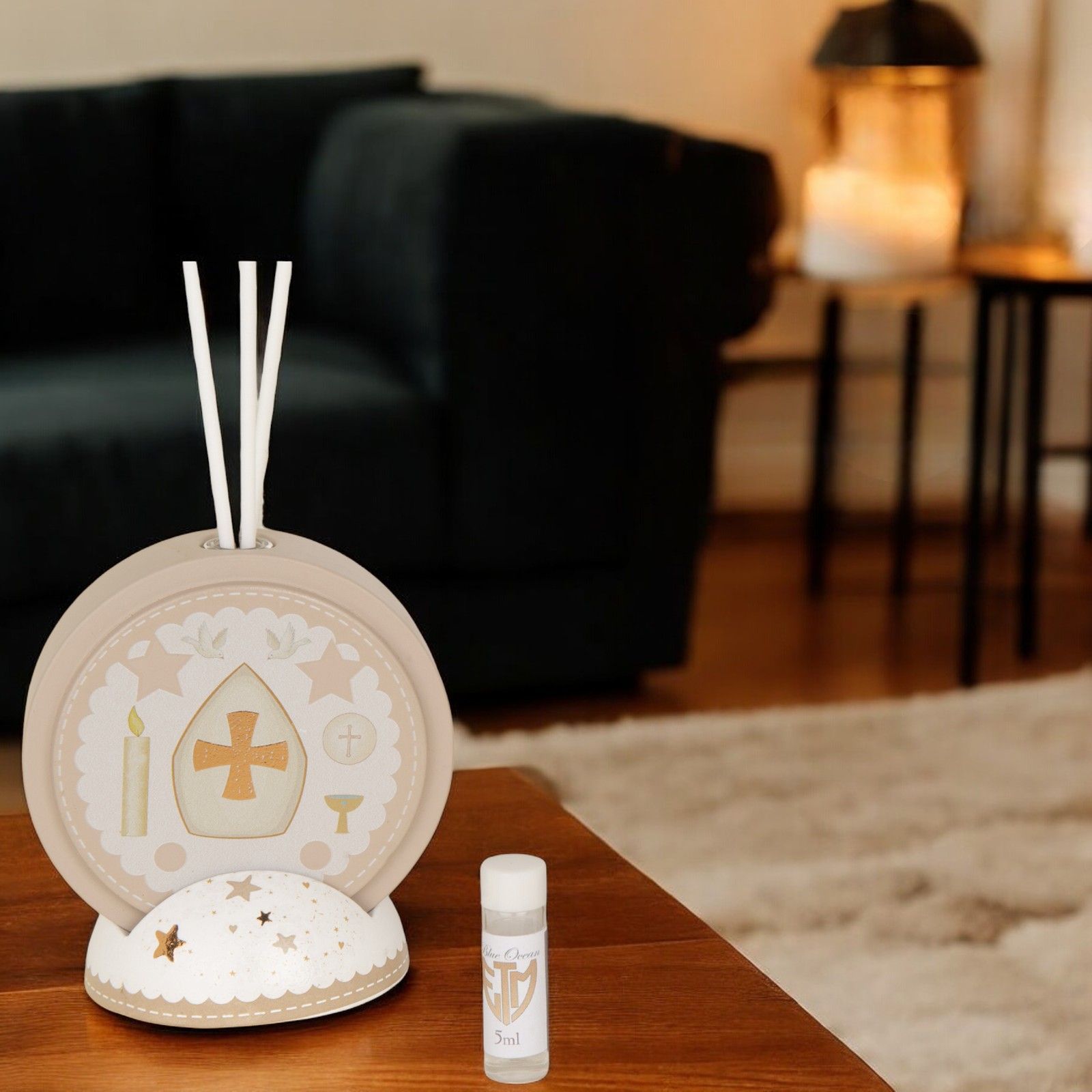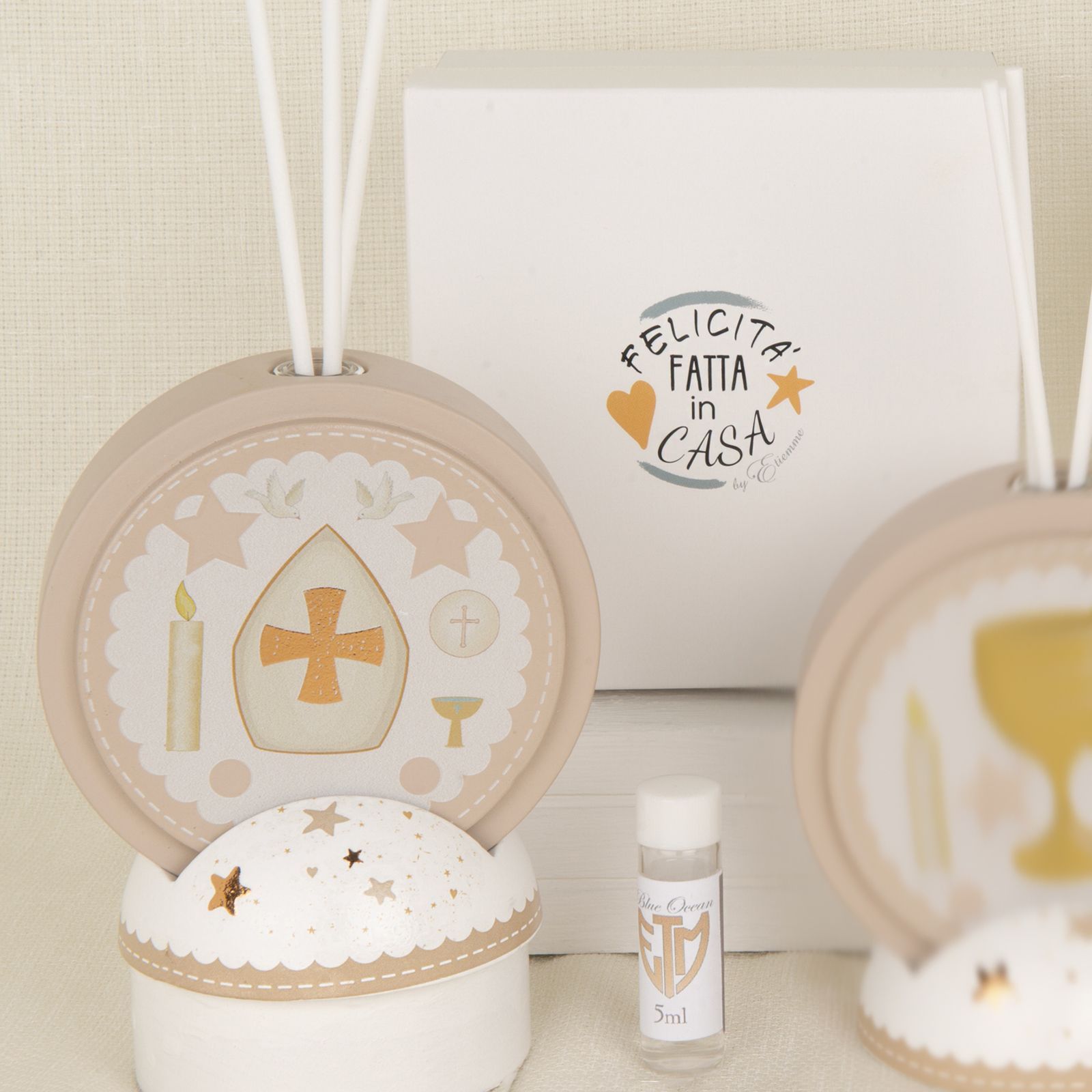 Scegli il diffusore ambiente a forma di cerchio con stelline e simboli sacri, e lascia un segno tangibile della tua gioia e della tua riconoscenza. Una bomboniera unica e indimenticabile per celebrare un momento così importante.
