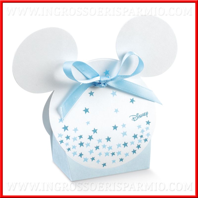Acquistando nel nostro store Disney online potrai risparmiare sul prezzo scatoline Topolino ed al tempo stesso ricevere un servizio completo, in quanto avrai la possibilità di ordinare bomboniere portaconfetti già assemblate, complete di 5 confetti Crispo e nastrino azzurro.
