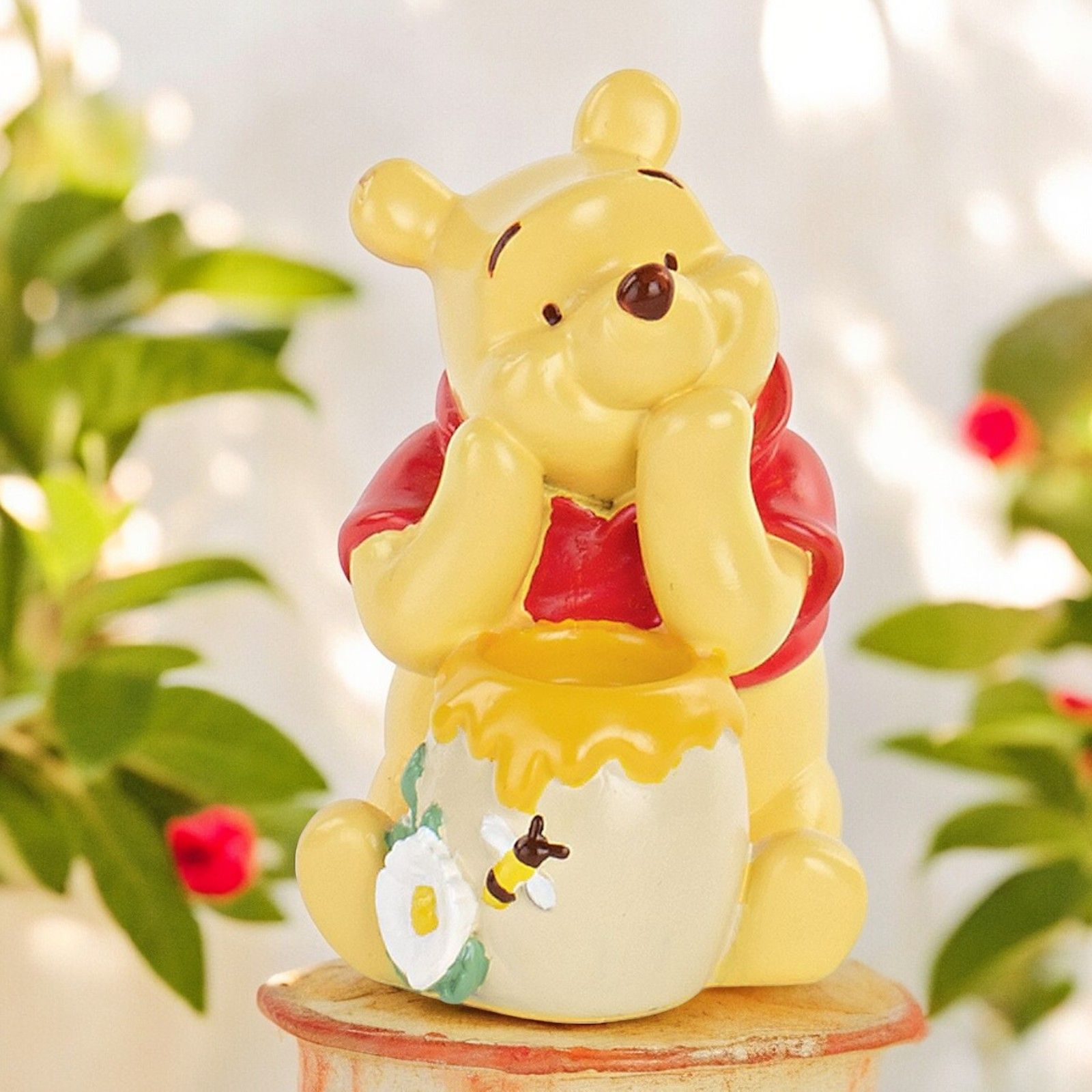 Direttamente dal nuovo catalogo bomboniere 2023 arrivano queste tenerissime stauine in resina che raffigurano l'orsetto Winnie The Pooh intento a gustare il miele da un barattolo.