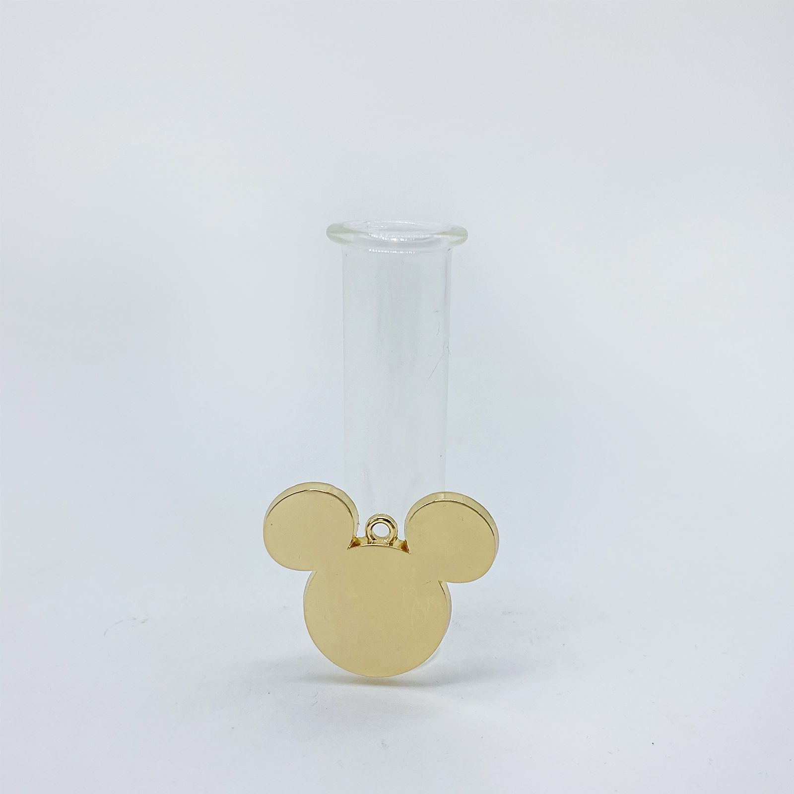 Questo piccolo capolavoro è composto da una fiala in vetro di alta qualità, progettata per conservare bastoncini profumati, fragranze e essenze e da eleganti decorazioni a forma di sagoma della testa di Mickey Mouse realizzate in metallo dorato, aggiungendo un tocco di lusso e magia al tuo evento.
