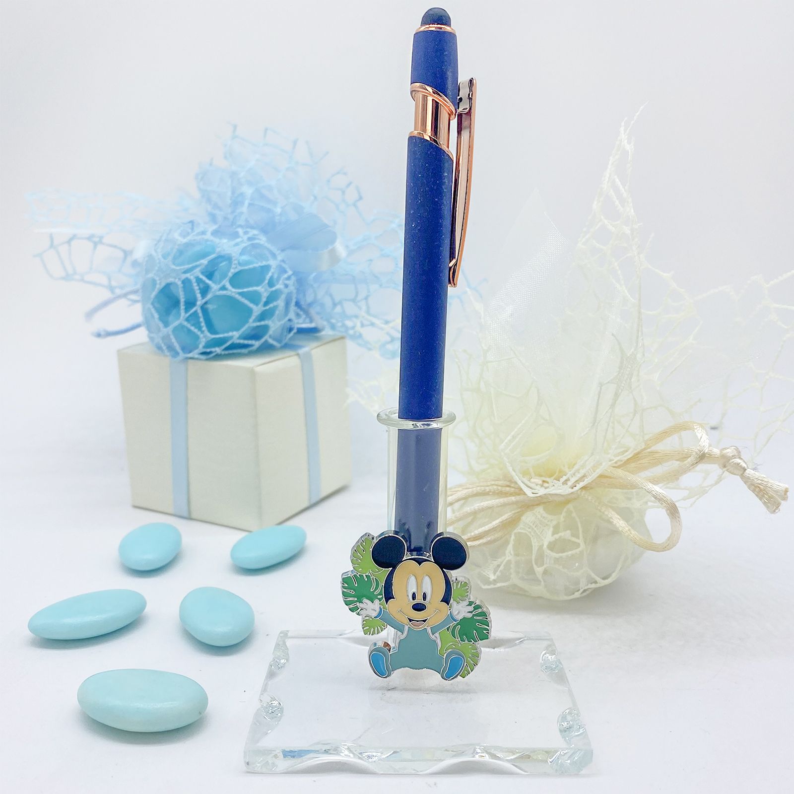 Scegliendo questa bomboniera, stai donando qualcosa di utile e multifunzionale, impreziosito dalla magia Disney di Topolino circondato da foglie, simbolo di freschezza e crescita.