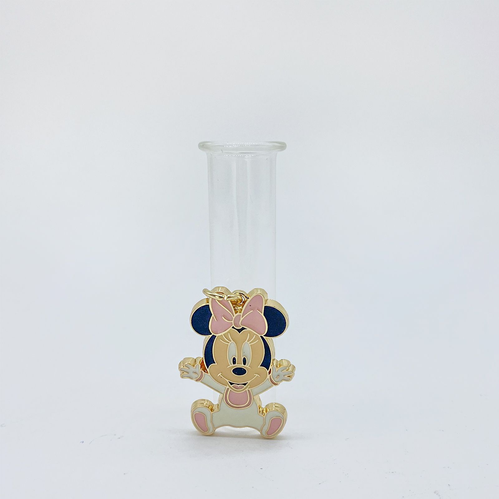 Questa graziosa creazione incarna la magia Disney in ogni dettaglio. La fiala in vetro, è pronta a ospitare essenze profumate che diffonderanno un profumo avvolgente e incantevole. La vera bellezza di questa bomboniera risiede nella sua parte esterna, dove graziose decorazioni a forma di Minnie Mouse rubano il cuore. Minnie appare vestita con una tenera tutina bianca e rosa, indossando un fiocco coordinato.
