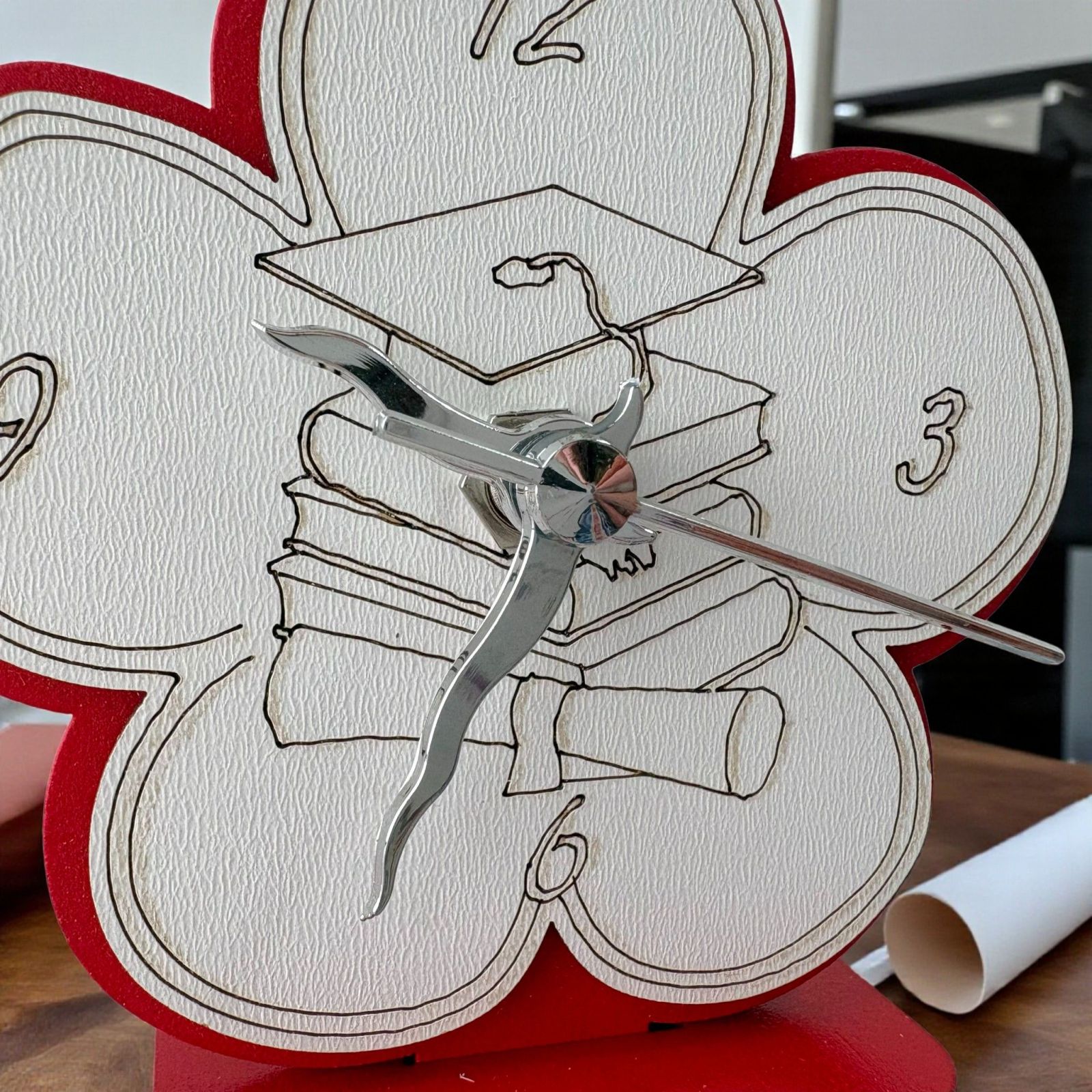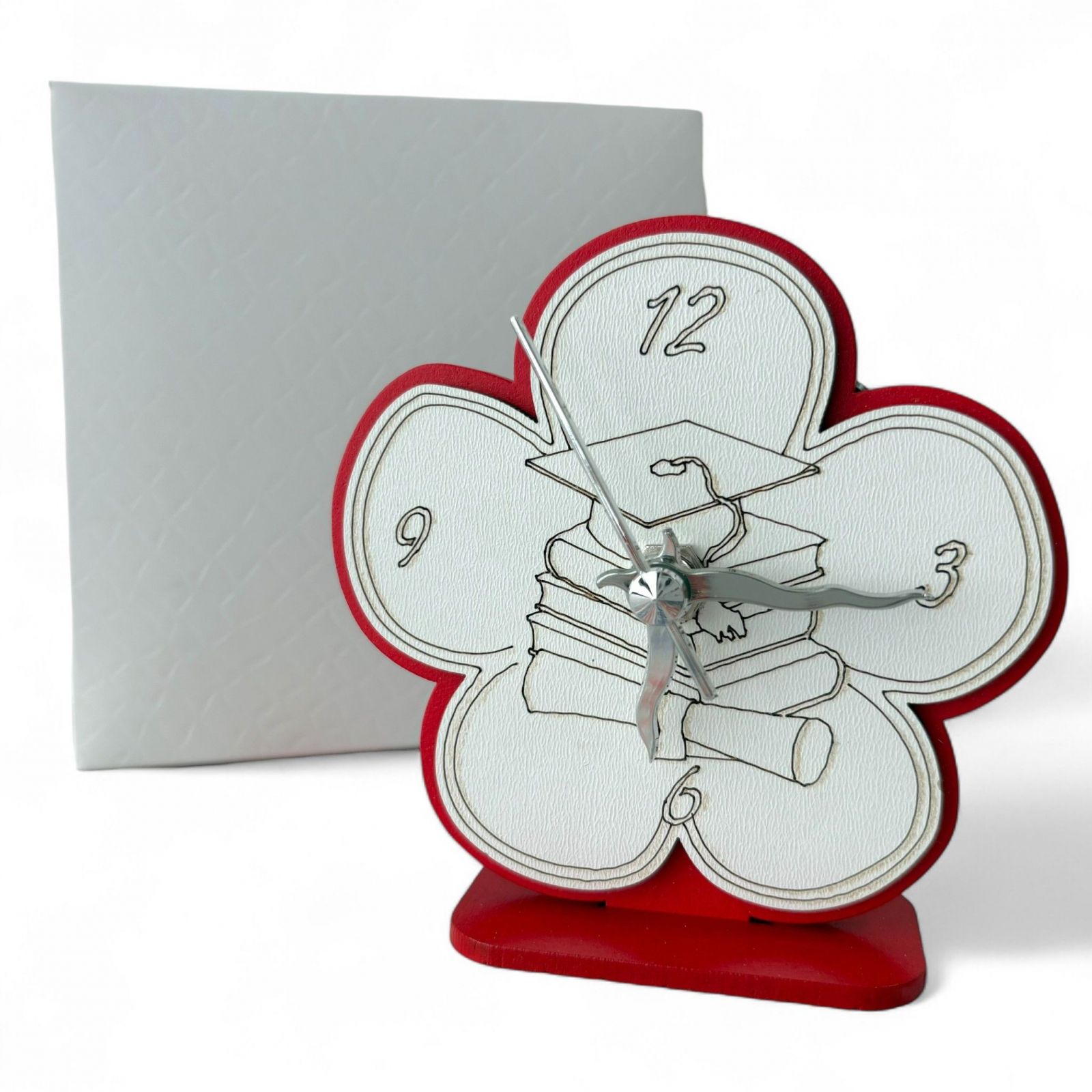 Realizzato in legno di alta qualità, questo orologio si distingue per il suo elegante colore rosso con interno bianco, che lo rende una delle bomboniere di laurea originali più ricercate. È una scelta raffinata per chi cerca idee per bomboniere laurea che lasciano il segno. Con una scatola regalo inclusa, sarà un omaggio che si farà sicuramente notare.
