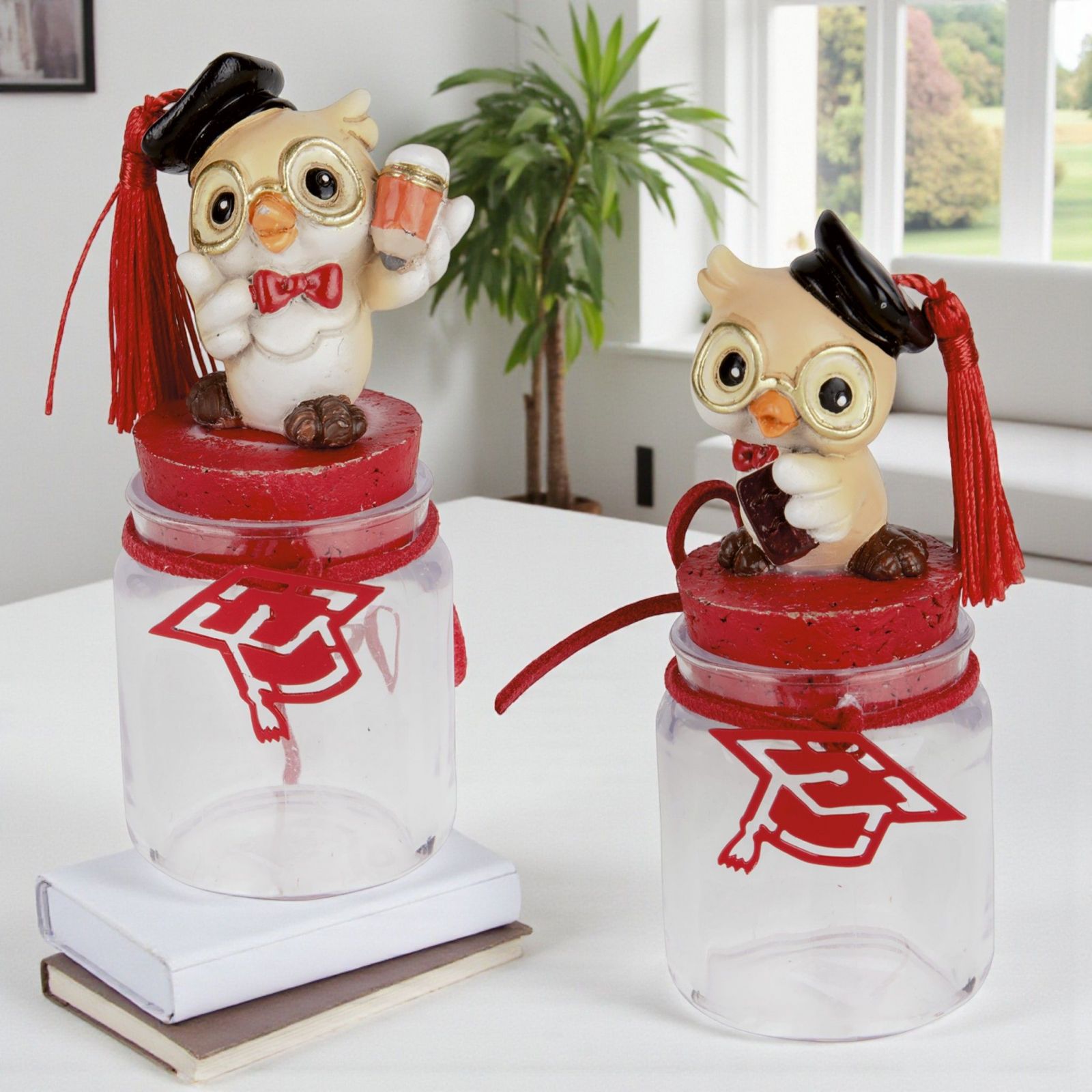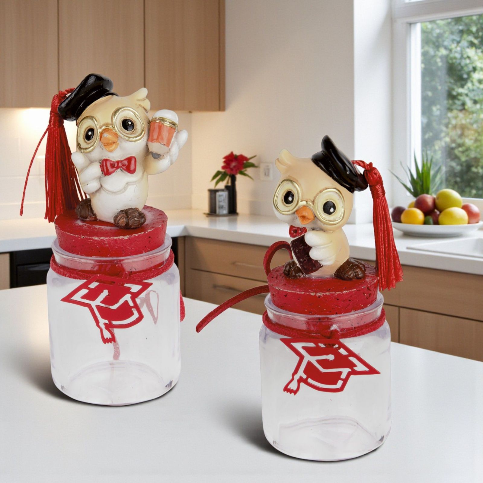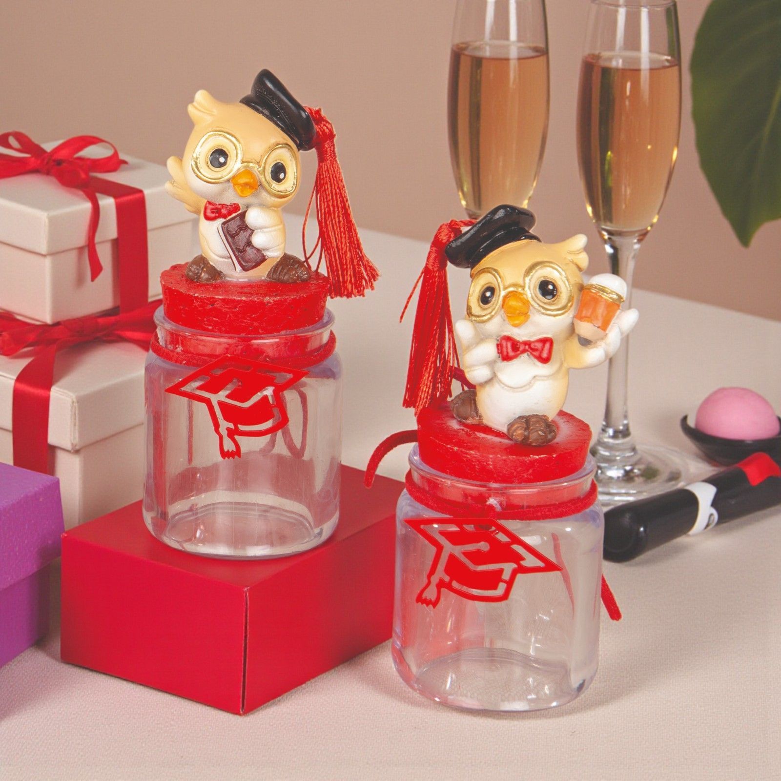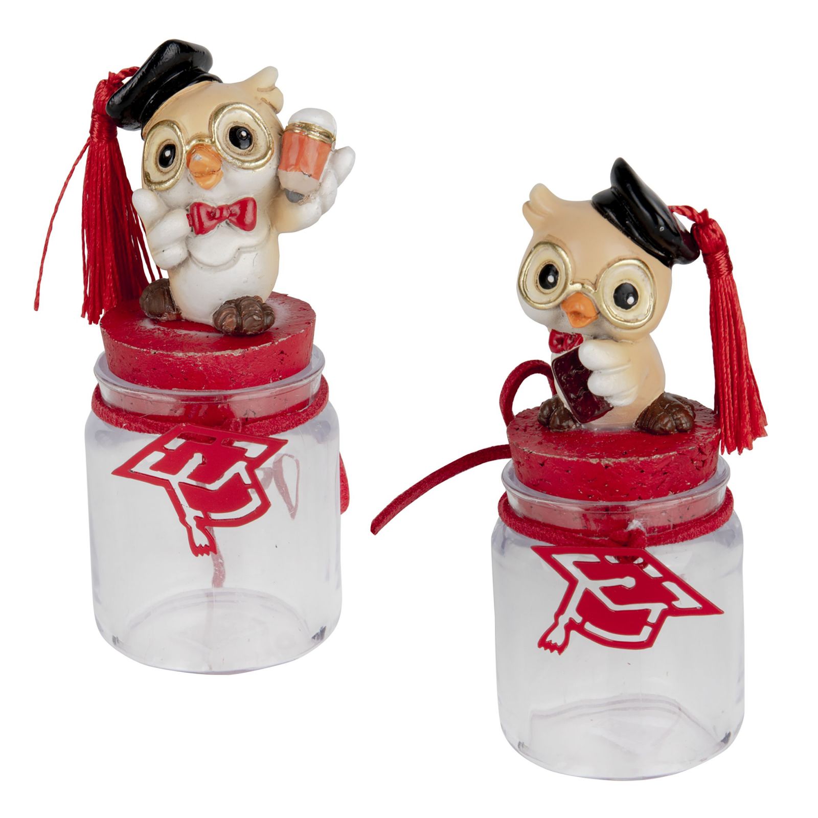 Festeggiare una laurea è un momento unico e speciale, e le nostre bomboniere con gufetto laureato sono il modo perfetto per rendere indimenticabile questa occasione. Ogni barattolo, con il suo tocco stilizzato rosso, porta con sé un messaggio di gioia e orgoglio, celebrando il traguardo raggiunto dai vostri cari. Scegliere queste bomboniere significa regalare un simbolo di saggezza e fortuna, un gesto che sarà custodito con affetto.