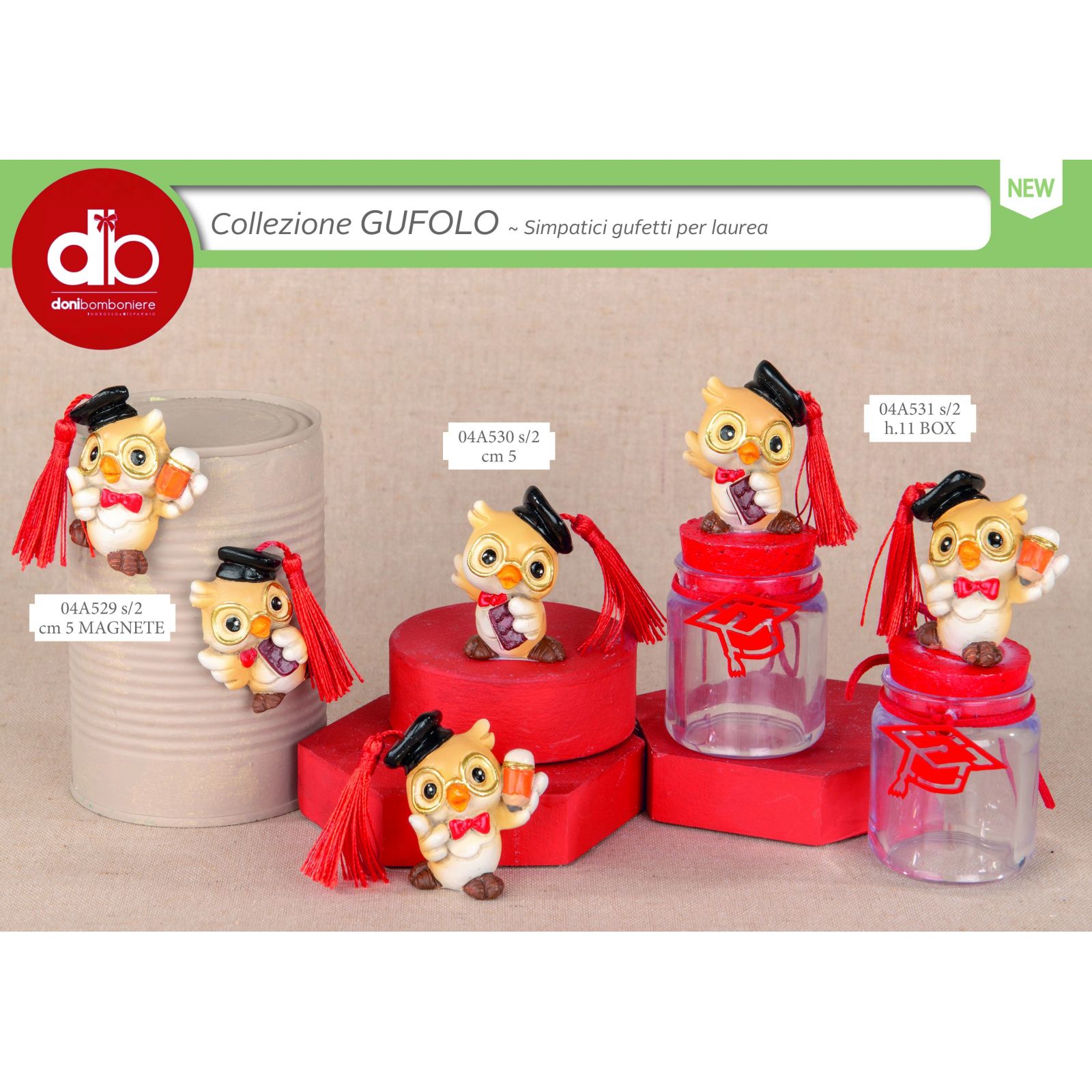 Disponibili in due modelli, il gufetto laureato tiene tra le mani una matita o un libro, rendendo ogni pezzo unico e originale. I colori pastello, abbinati al tocco nero e alla nappina rossa, donano un'eleganza discreta e vivace. Queste bomboniere sono non solo un regalo, ma un ricordo tangibile di una giornata straordinaria, perfette anche come idee bomboniere battesimo per un bimbo.