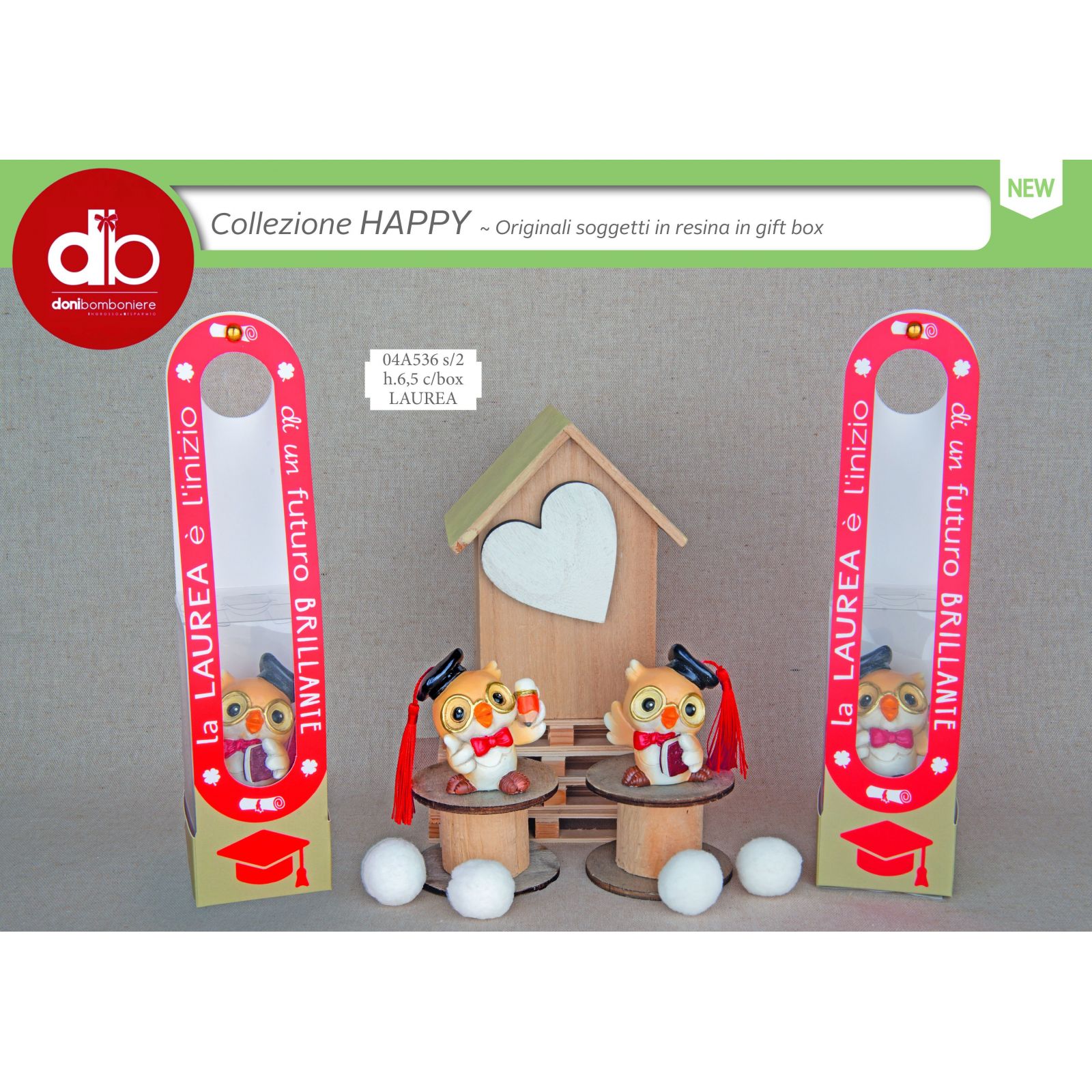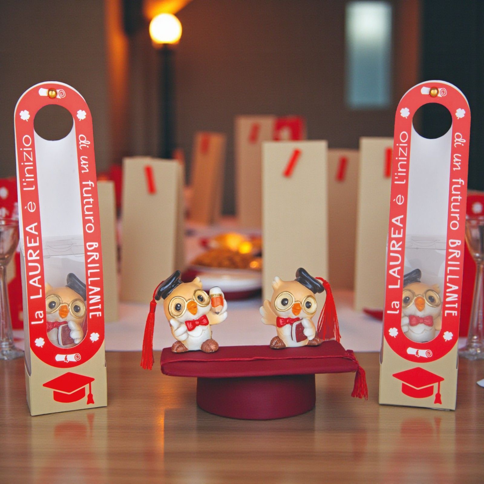 Splende di simpatia questa vivace bomboniera dedicata alla Laurea, una statuina raffigurante un tenero gufetto laureato con tocco e nappina rossa. Realizzata in resina e proposta in due modelli assortiti — con libro tra le mani oppure con matita — conquista gli invitati grazie ai suoi colori pastello e al suo significato di saggezza e buon auspicio.