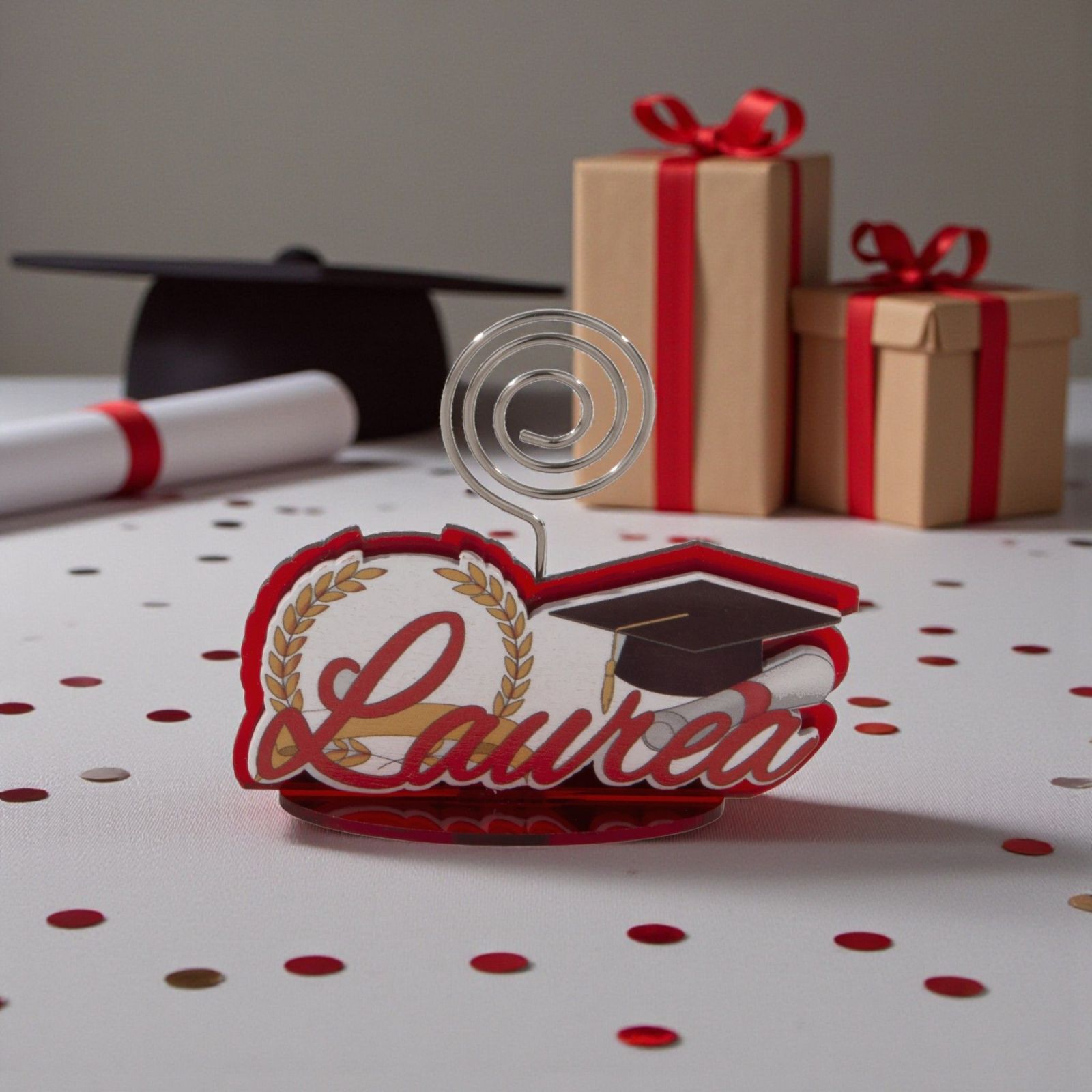 I colori rosso e nero rendono questo portafoto versatile e adatto a qualsiasi stile di festa. Perfetto per contenere una foto, un biglietto o un piccolo pensiero, trasforma ogni bomboniere per laurea originali in un ricordo tangibile, elegante e personale, aggiungendo un tocco unico al tuo allestimento.