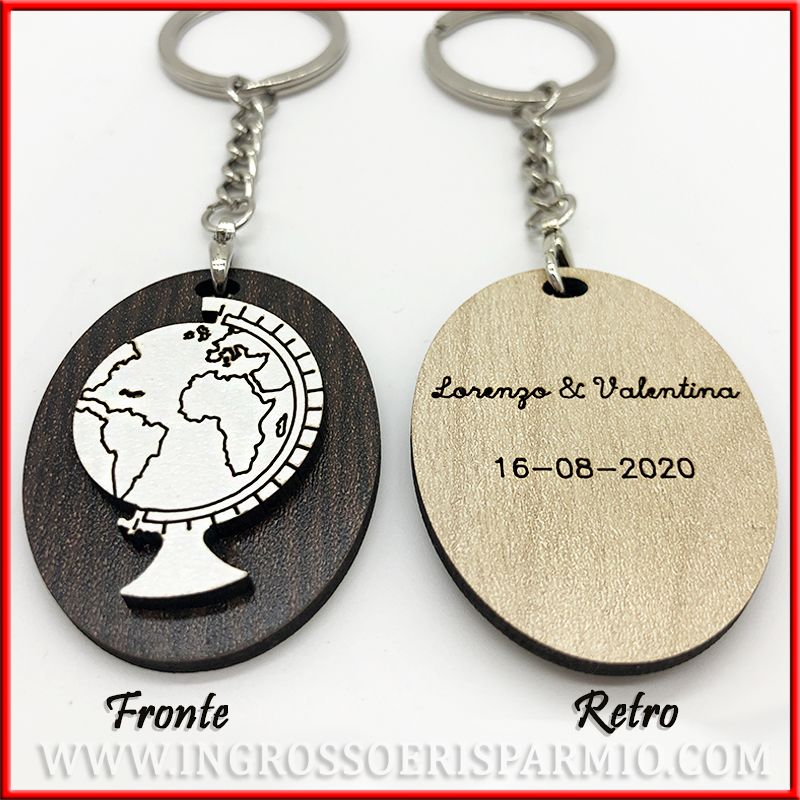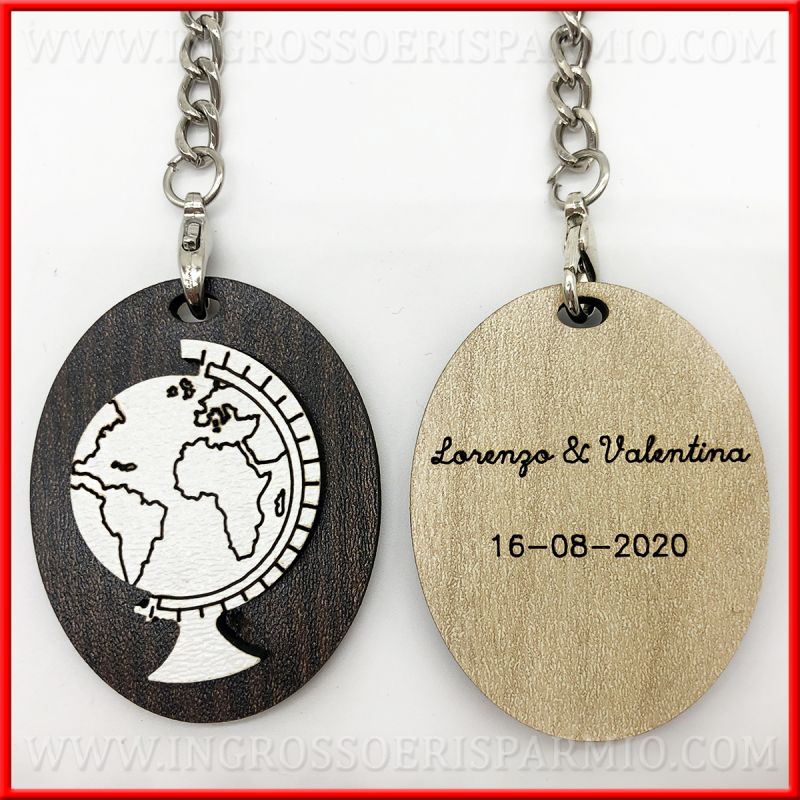 PERSONALIZZA IL PORTACHIAVI PER IL TUO EVENTO CON UN'INCISIONE: sul retro del ciondolo mappamondo puoi richiedere incisione di nome e data o altro.