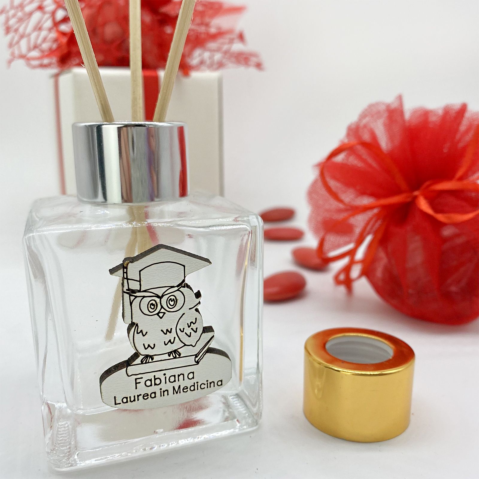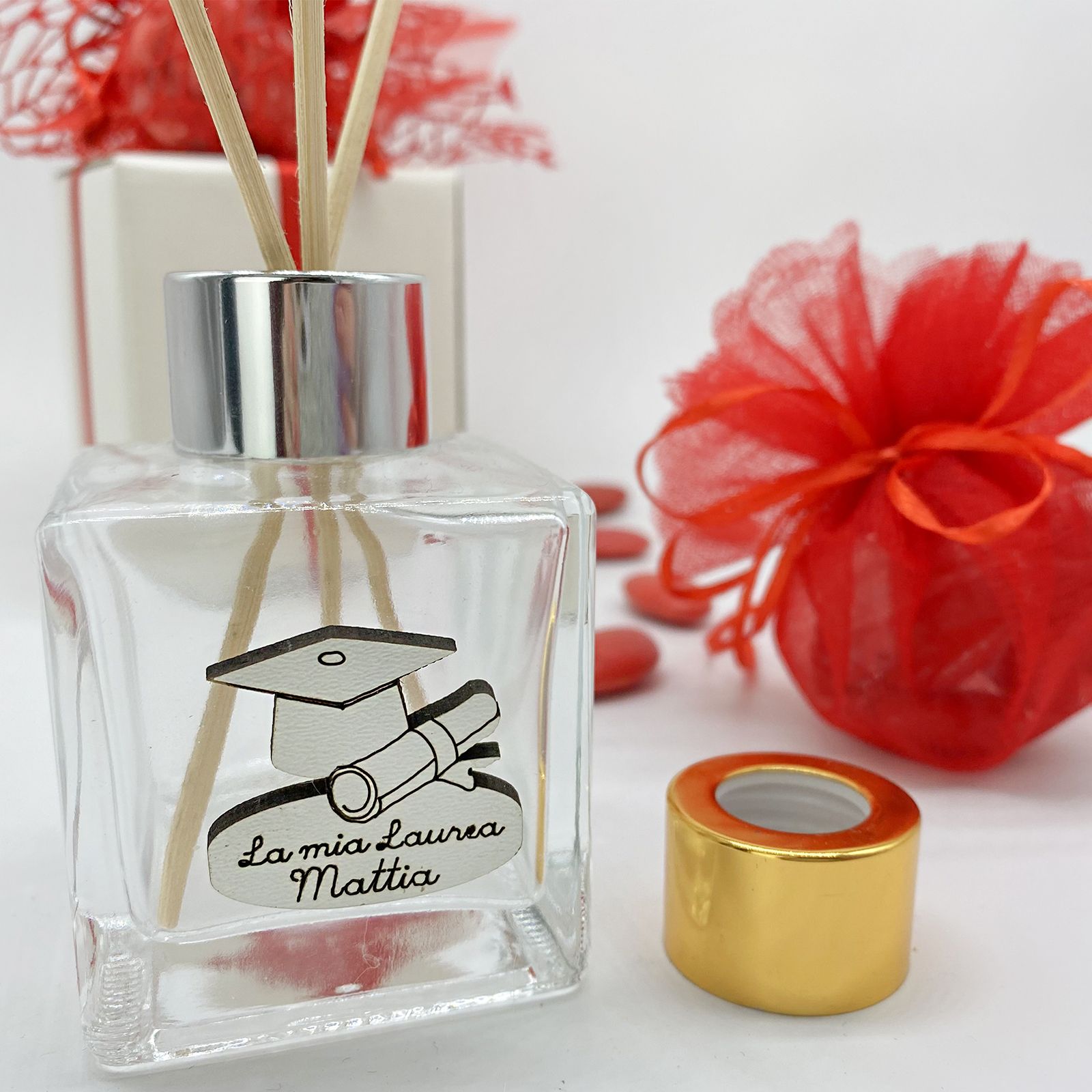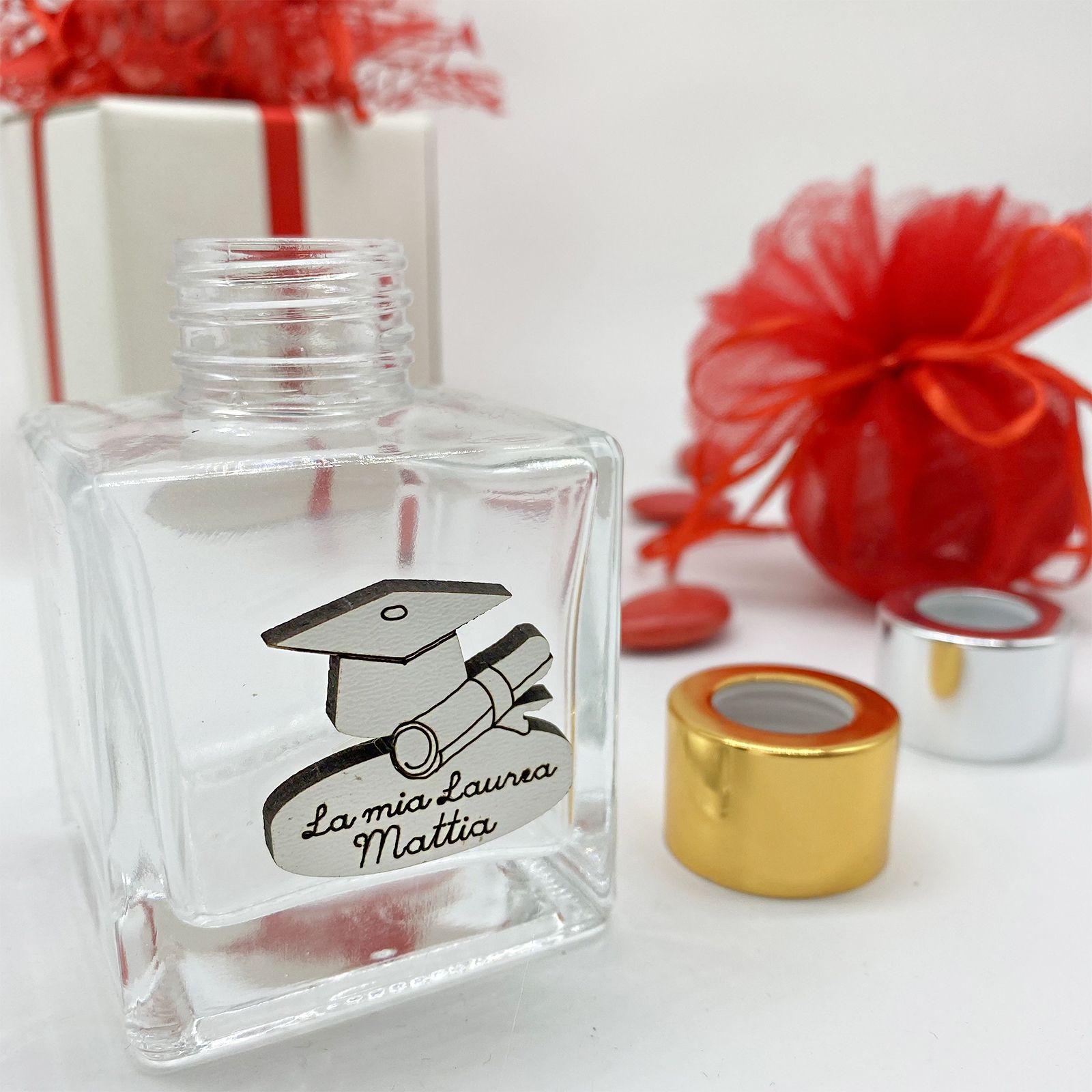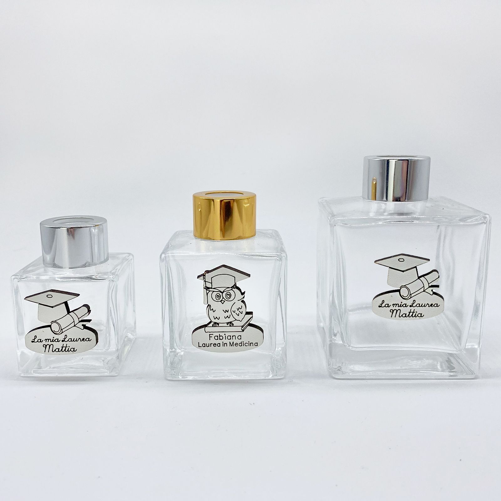 Crea le tue bomboniere laurea economiche e utilizza le nostre bottiglie in vetro per realizzare degli eleganti profumatori per ambiente fai da te (aggiungendo nel carrello anche essenze e bastoncini) o adoperale per contenere profumi homemade o sali da bagno.