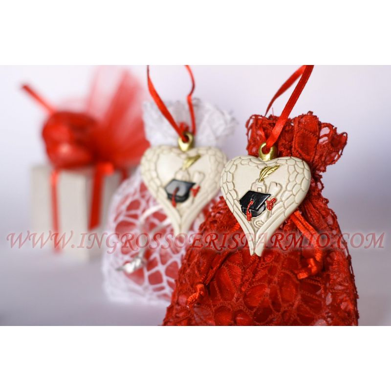 - Con sacchettino moderno in tulle e retina con all'interno 5 confetti delle migliori marche (Crispo/Maxtris) rosso (tonalità tema della laurea) o del colore a tua scelta.