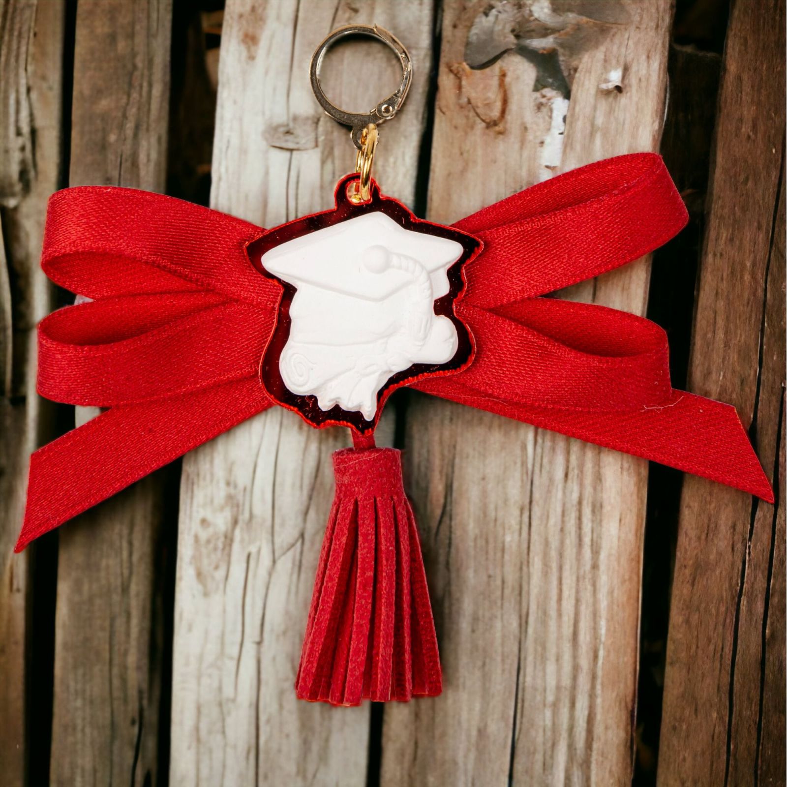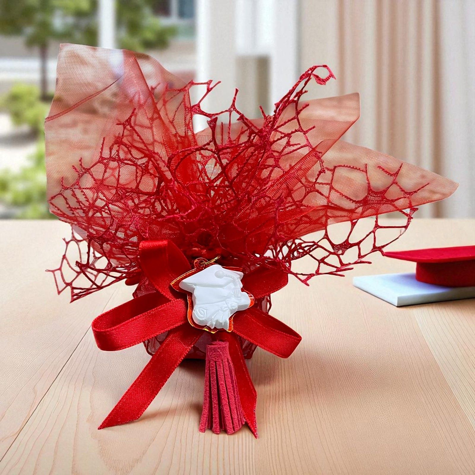Regalare una bomboniera come questo ciondolo con fiocco e nappina rossa con applicazione gessetto è un modo splendido di celebrare un trgauardo così importante come la laurea. Un ricordo indelebile da conservare per sempre.