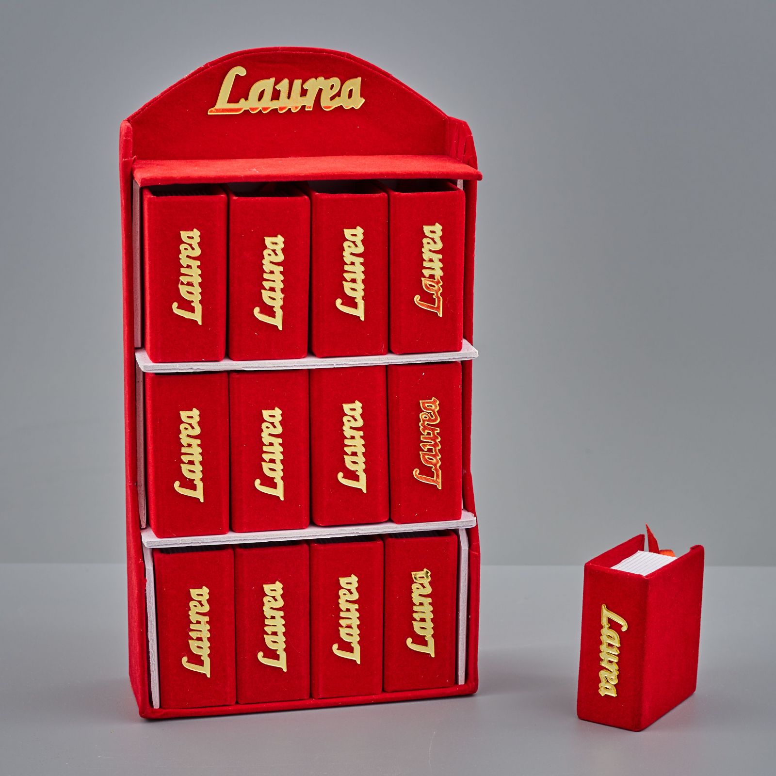 Disponibile in due dimensioni: 12 scatoline (15x7x29 circa); 24 Scatoline (22x7x38 circa), questa bomboniera è realizzata in colore rosso ed è l'ideale per festeggiare la laurea di qualsiasi facoltà.