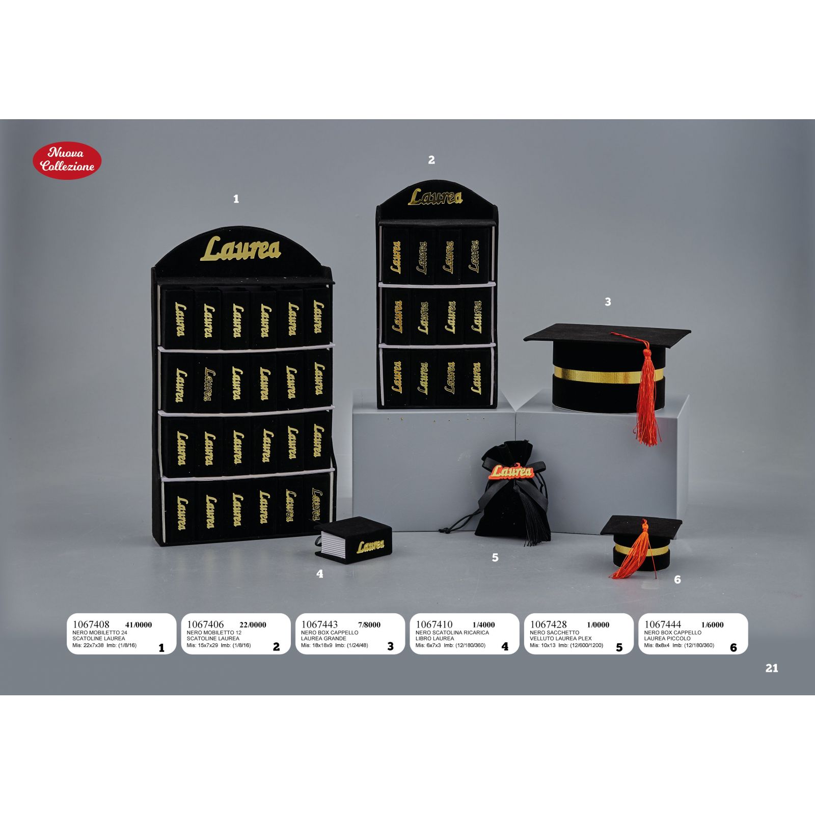 Un pensierino che rappresenterà la conclusione di un traguardo importante e il ricordo di una confettata indimenticabile. Questa bomboniera misura 8x10 cm circa e ha un nero intenso.Unisci l'utile al gradito e regala un dono che resterà per sempre nel cuore degli invitati!