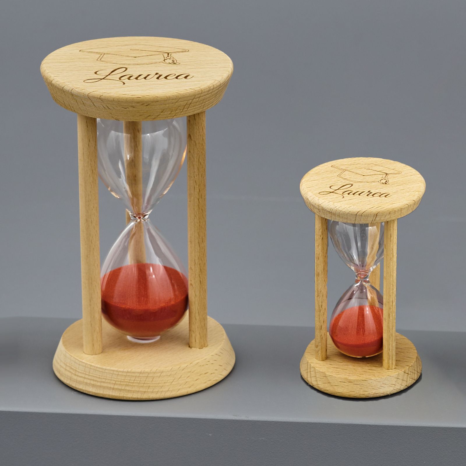 Clessidra di Sabbia Rossa con Incisione per la Laurea