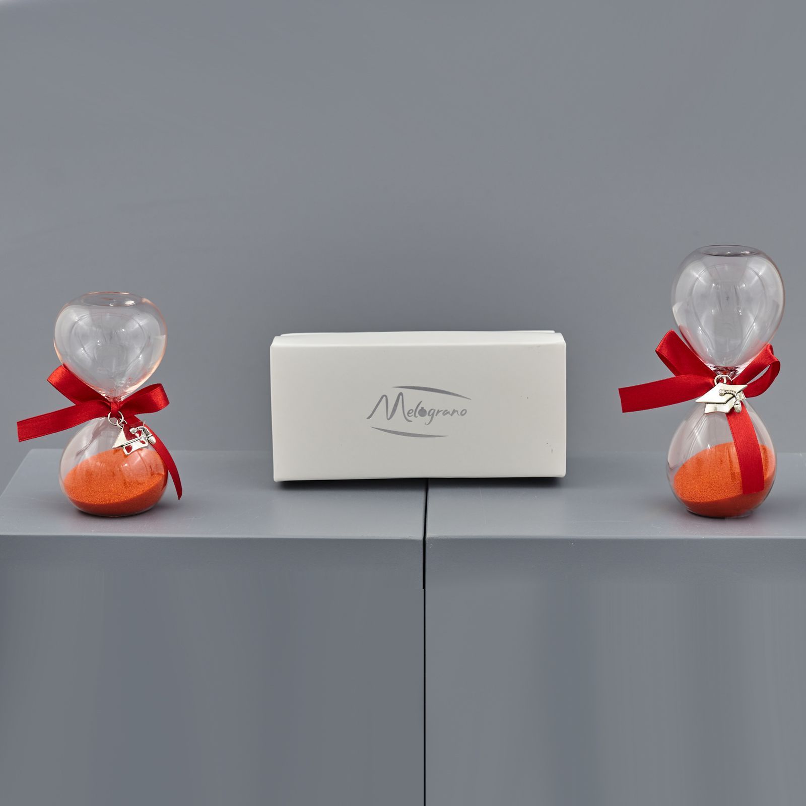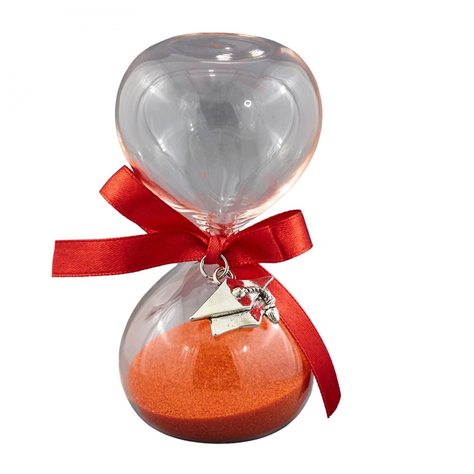 Regala utilità e stile con questa clessidra con sabbia rossa, decorata con un romantico fiocco rosso e un delizioso ciondolo a forma di tocco argentato. Disponibile in due dimensioni: Standard (5x5x10 cm circa) e Grande (5x5x12 cm circa), questo regalo è l'ideale sia come bomboniera per i tuoi invitati alla tua laurea, sia come regalo per la festeggiata/o. E non dimenticare la scatola regalo inclusa nel prezzo!