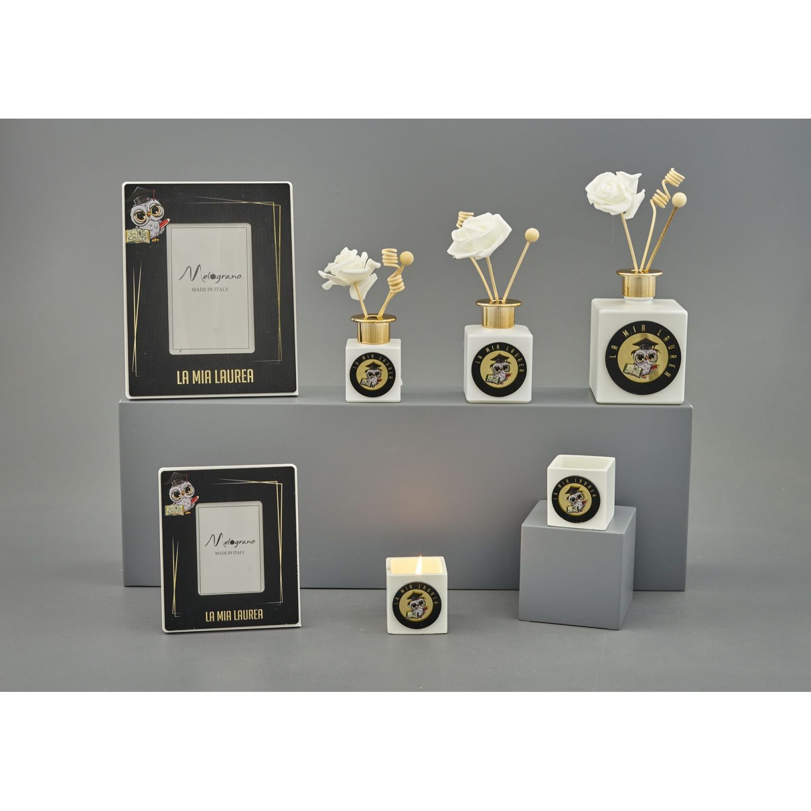Celebra la tua laurea con un tocco di eleganza e originalità grazie al nostro profumatore ambiente con gufetto laureato. Disponibile in tre dimensioni per adattarsi a ogni spazio: