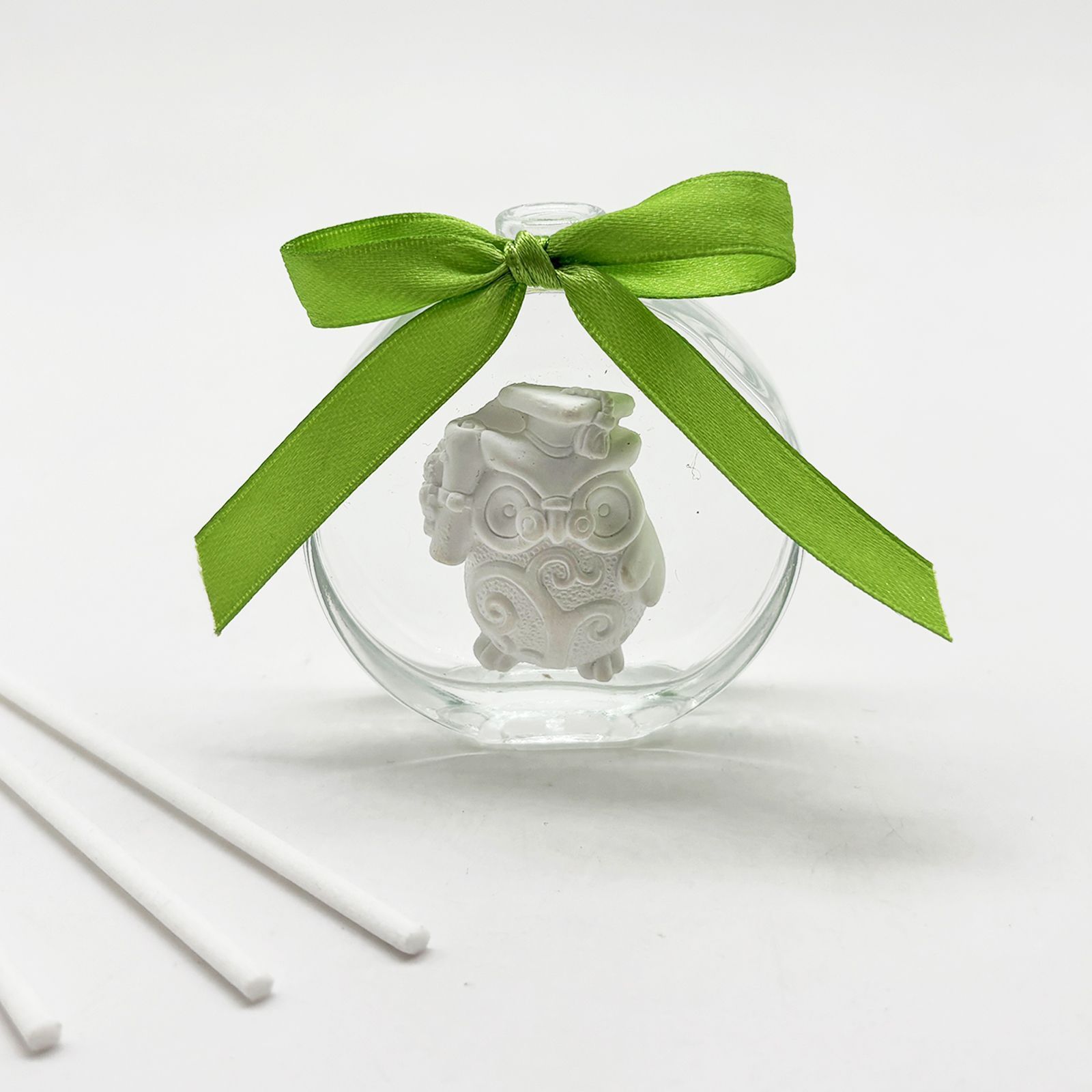 Il profumatore per ambienti con un simpatico gufetto è l'idea perfetta per sorprendere i tuoi ospiti alla tua laurea. Assortita in due modelli: gufetto con libro o con pergamena.