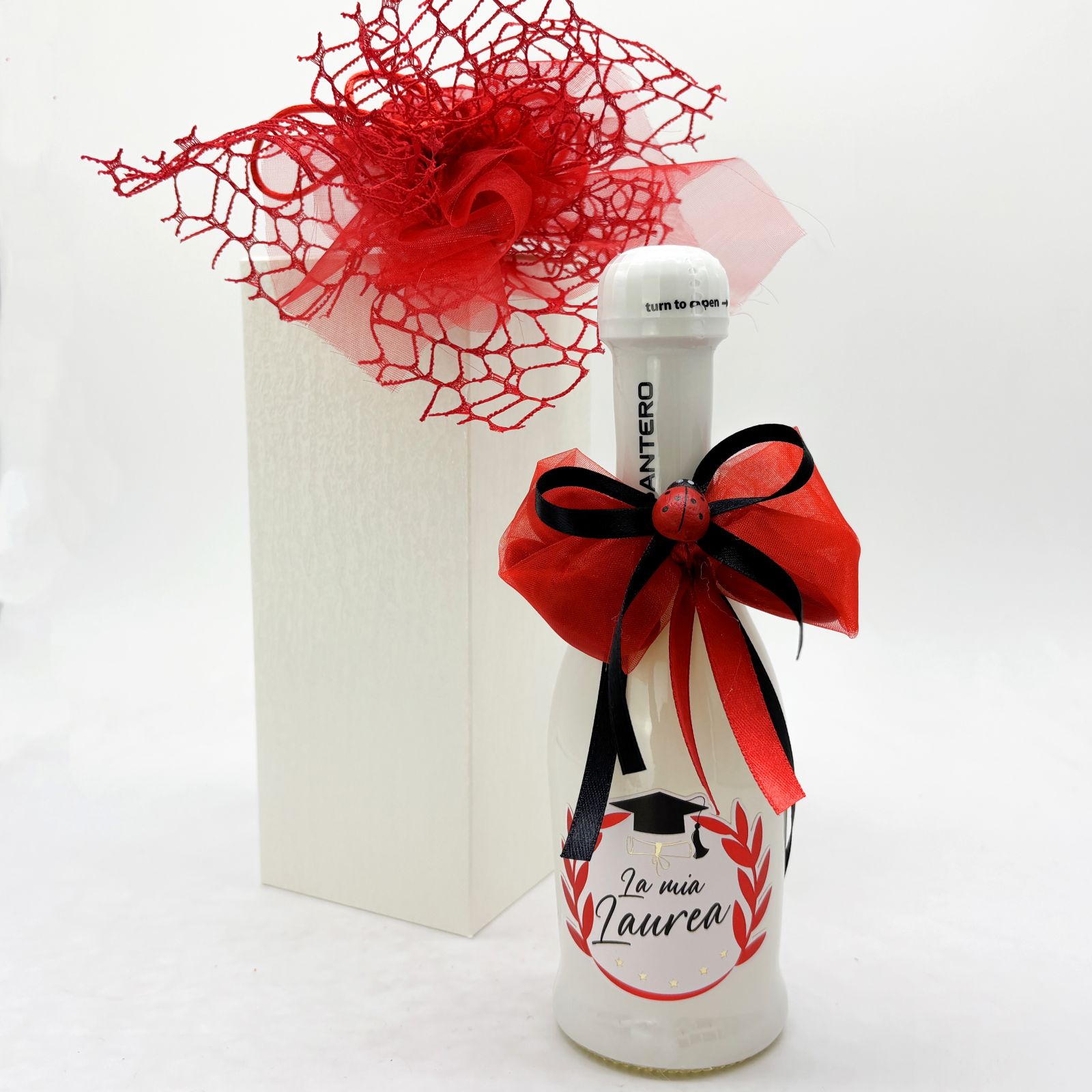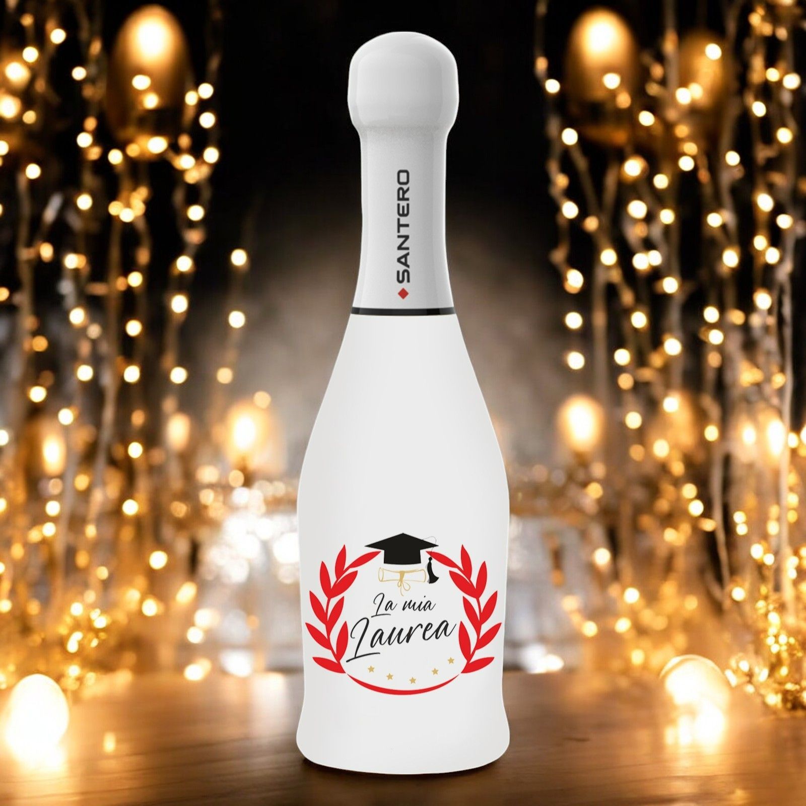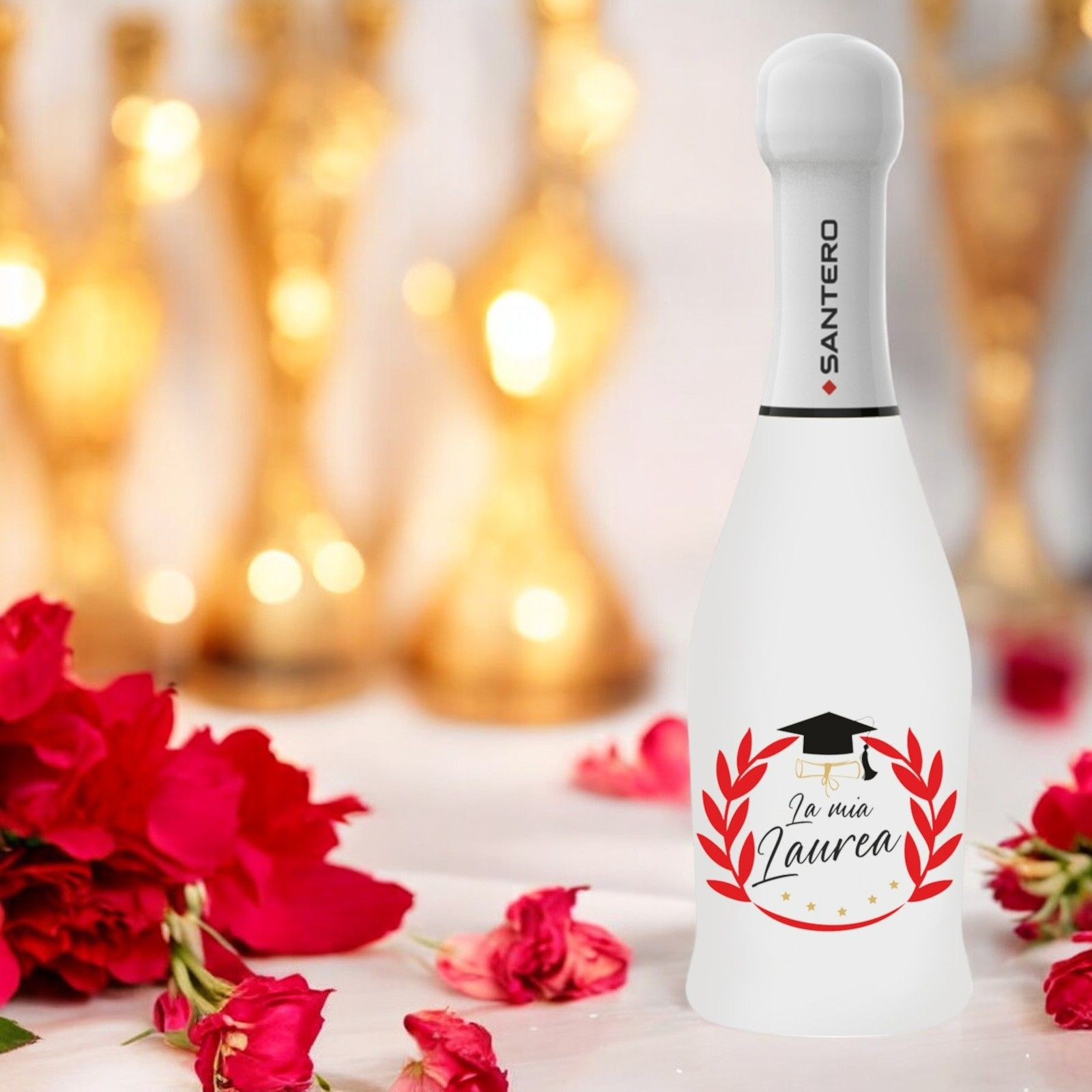 La Bottiglia di spumante extra dry white Santero con etichetta personalizzata "La mia laurea" è la bomboniera perfetta per celebrare la tua laurea in modo unico ed indimenticabile. Questo elegante e raffinato spumante, con una da 200 ml, è ideale per condividere la gioia della tua laurea con i tuoi invitati.