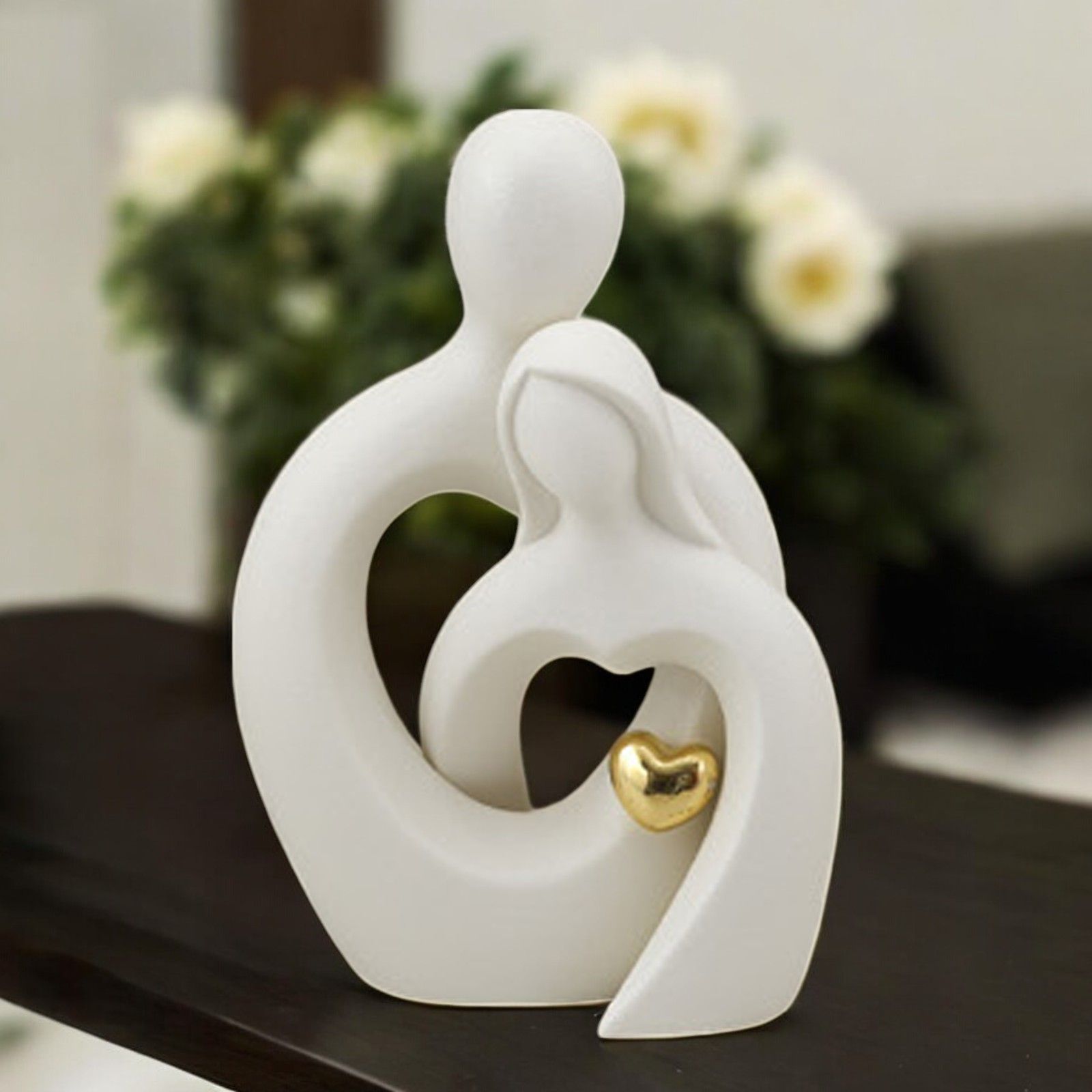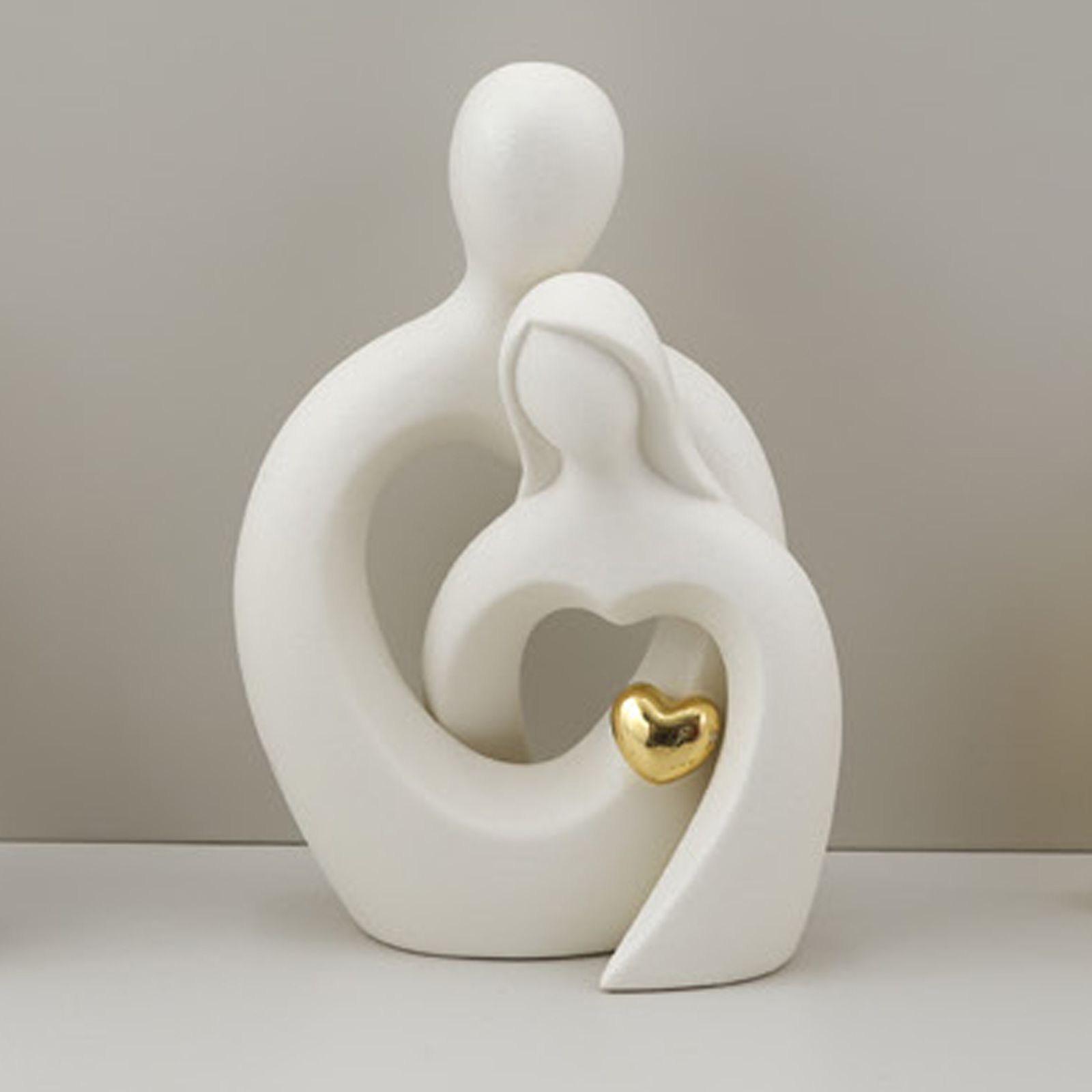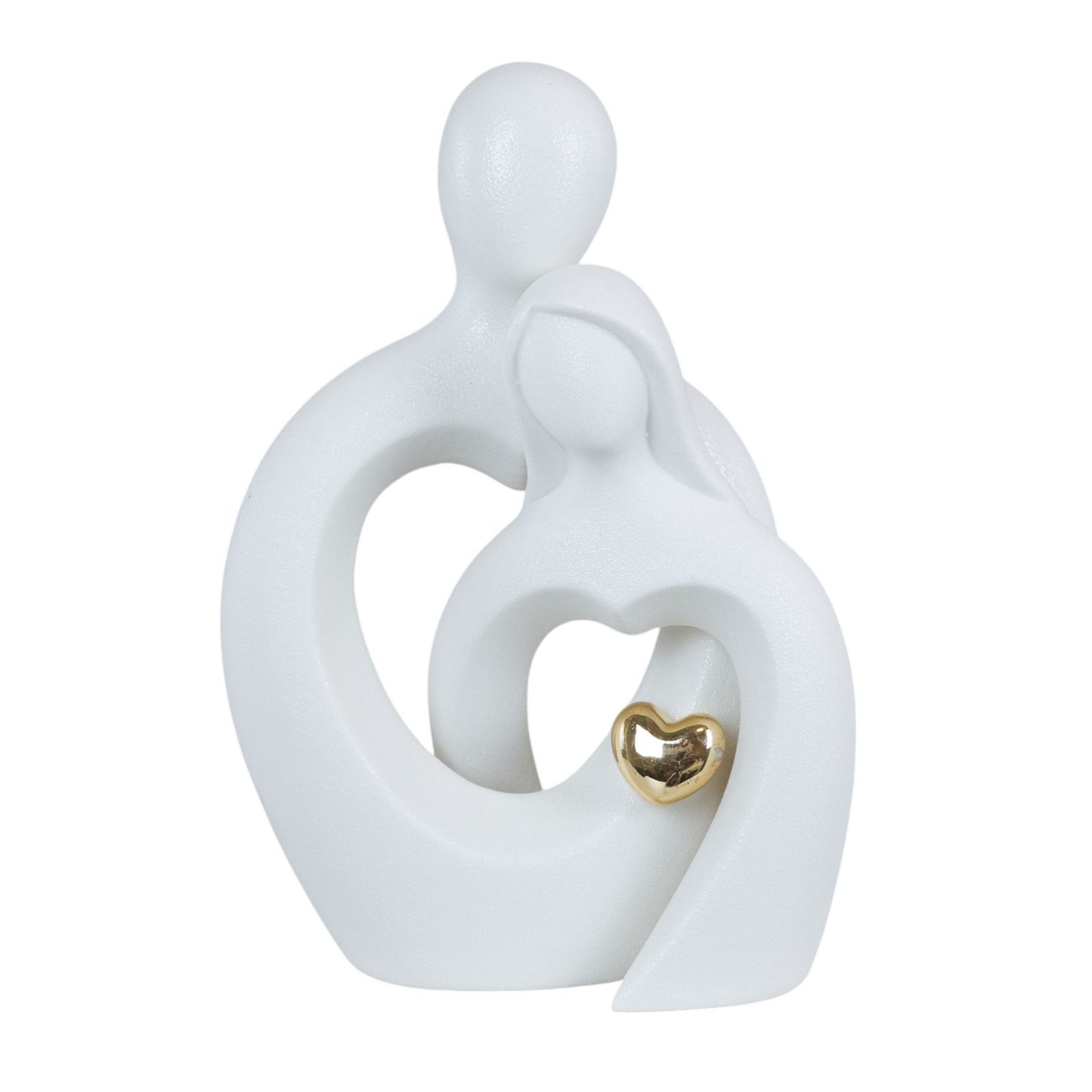 Questa elegante bomboniera rappresenta il simbolo perfetto per celebrare il vostro matrimonio o anniversario in modo unico e speciale. Realizzata in pregiata resina bianca, presenta una coppia intrecciata con un cuoricino color oro, simbolo di amore eterno e legame indissolubile.