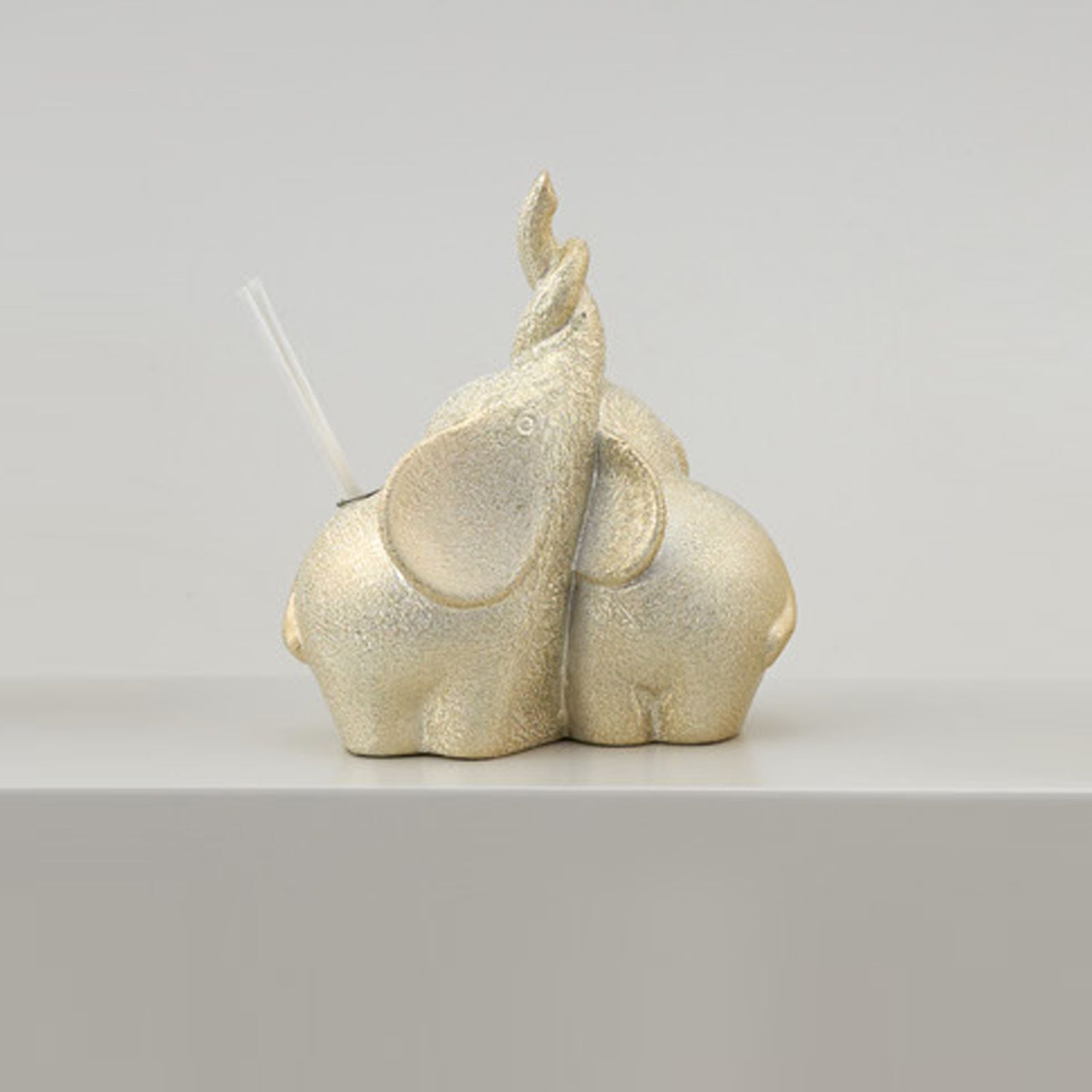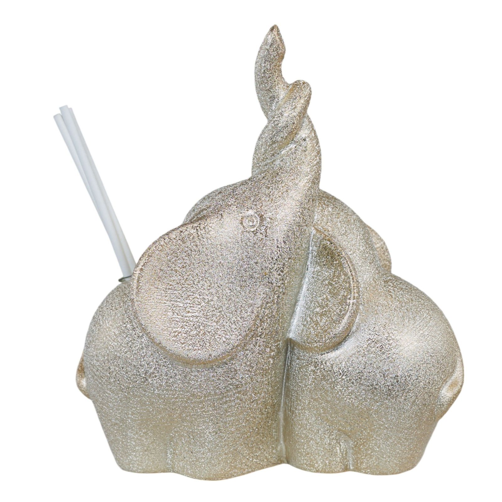 In occasione del vostro matrimonio o delle vostre nozze d'oro, regalate ai vostri invitati qualcosa di speciale e unico. Questo profumatore rappresenta l'amore eterno con due elefantini che intrecciano le proboscidi, simbolo di legame indissolubile.