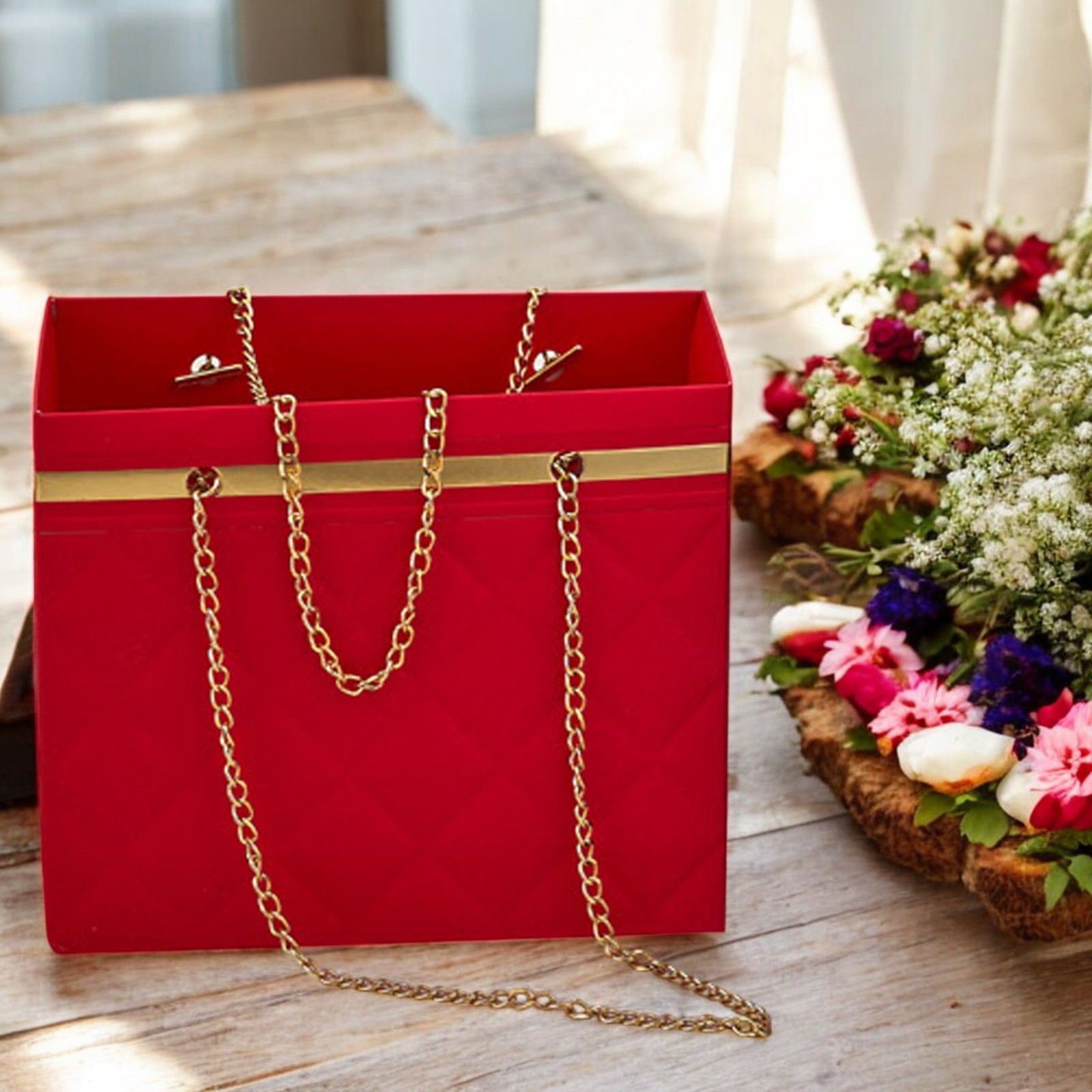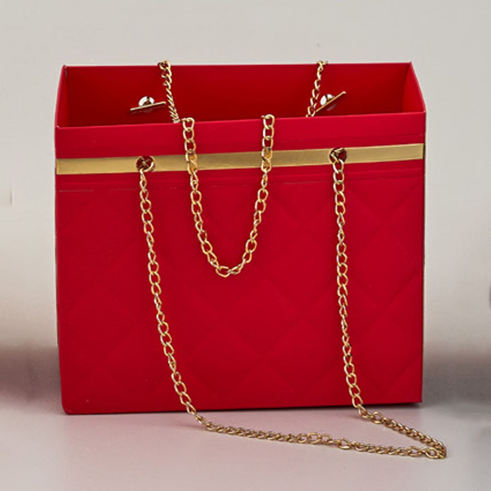 Originale e particolare come regalo per la comunione, cresima, diciottesimo, compleanno, 40 anni, 50 anni o 30 anni, questo vaso porta piante a forma di borsetta con catenella color oro è l'ideale per sorprendere i tuoi invitati. Realizzato in cartone rigido effetto ecopelle, ha dimensioni di circa 18 x 10 x 15 cm e un colore rosso vivace che lo rende davvero unico.