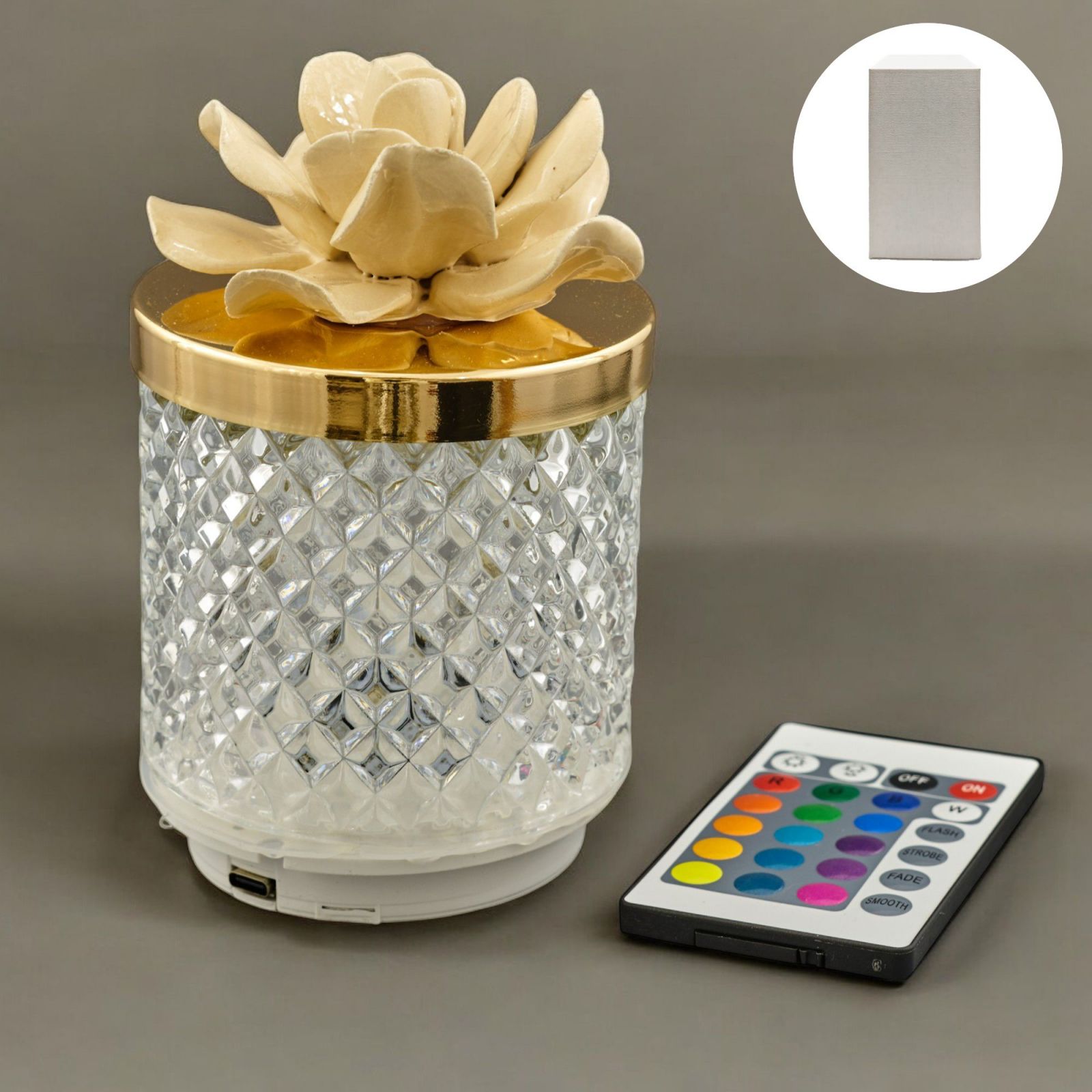 Utilizzabile anche per anniversari o comunioni, questa lampada LED offre una luce RGB con telecomando che permette di cambiare facilmente il colore e creare un'atmosfera magica. Completa di vari pulsanti, è un regalo pratico e d'effetto che rimarrà nel cuore di chi lo riceve.