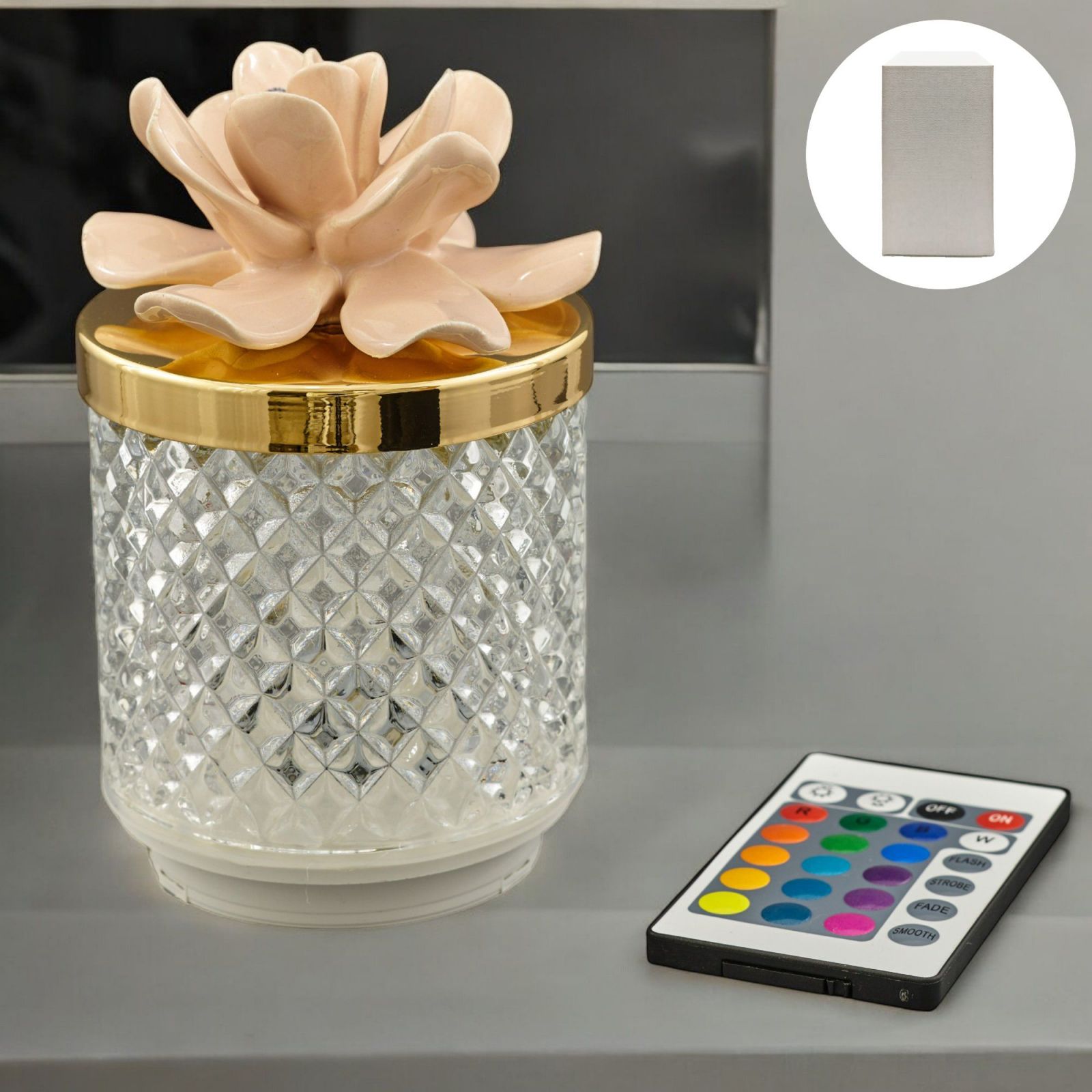 Sei alla ricerca di una bomboniera originale e particolare per il tuo matrimonio? La lampada LED effetto diamante con coperchio con fiore è la scelta perfetta per te. Realizzata in vetro e Capodimonte, questa bomboniera è un'idea unica e completa per celebrare il tuo giorno speciale. Regalare questa bomboniera ai tuoi ospiti è un modo elegante per ringraziarli di aver condiviso con te e il tuo partner un momento così importante.