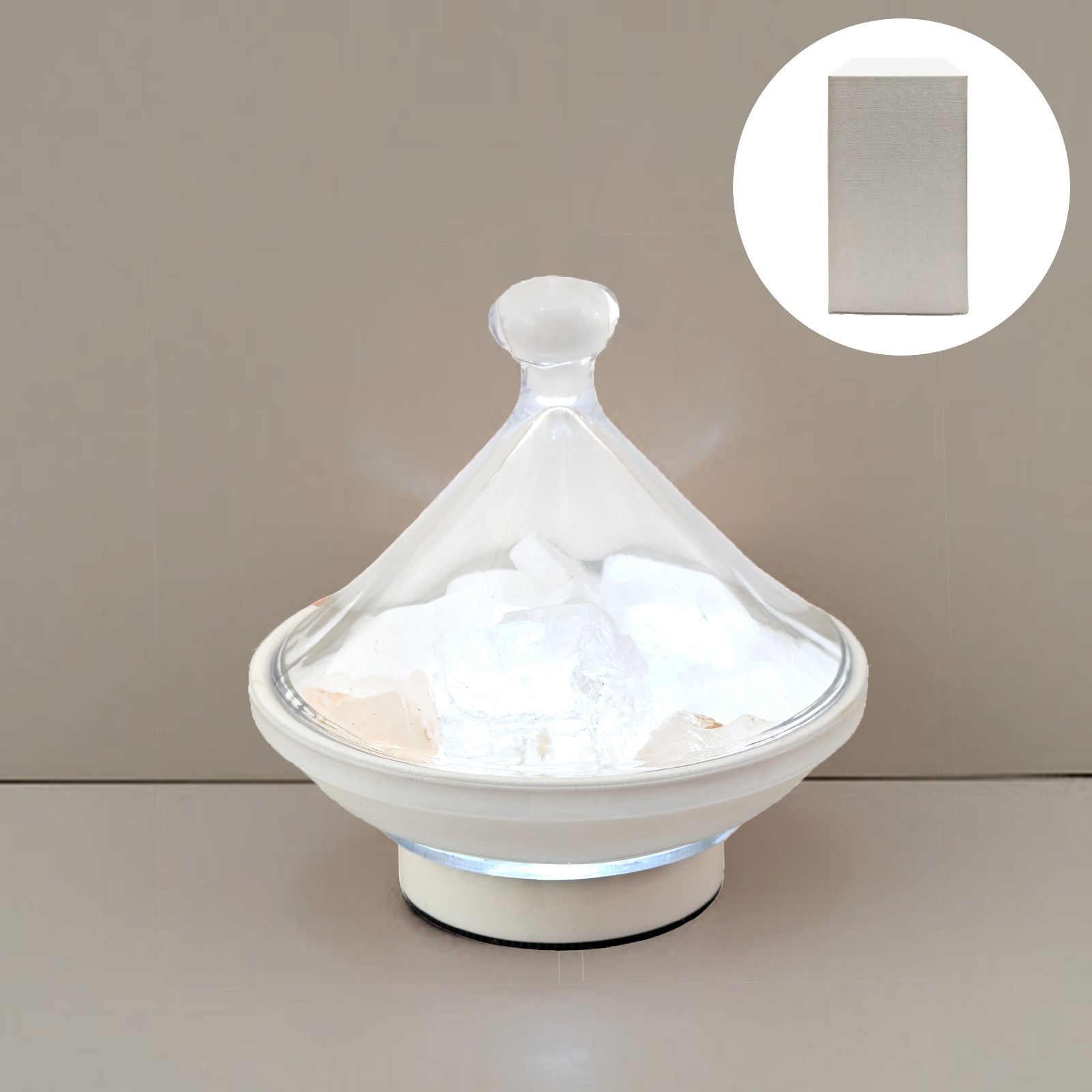 Il sale bianco dell’Himalaya è conosciuto per le sue proprietà benefiche, favorendo un’atmosfera rilassante e armoniosa. Questa bomboniera non è solo un oggetto decorativo, ma un simbolo di benessere e cura. Regalare questa lampada significa donare un accessorio che diffonde una luce soffusa, creando un ambiente accogliente e sereno.