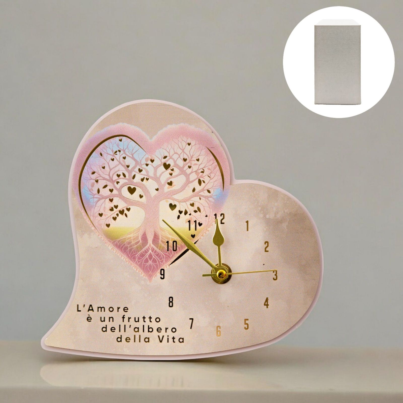 Sei alla ricerca di un regalo speciale per eventi come comunione, cresima, matrimonio o anniversario? Questa bomboniera potrebbe essere la soluzione perfetta! Realizzata in resina di alta qualità, questo orologio a forma di cuore è decorato con un cuore e un albero della vita, mentre il lato destro presenta un elegante quadrante.