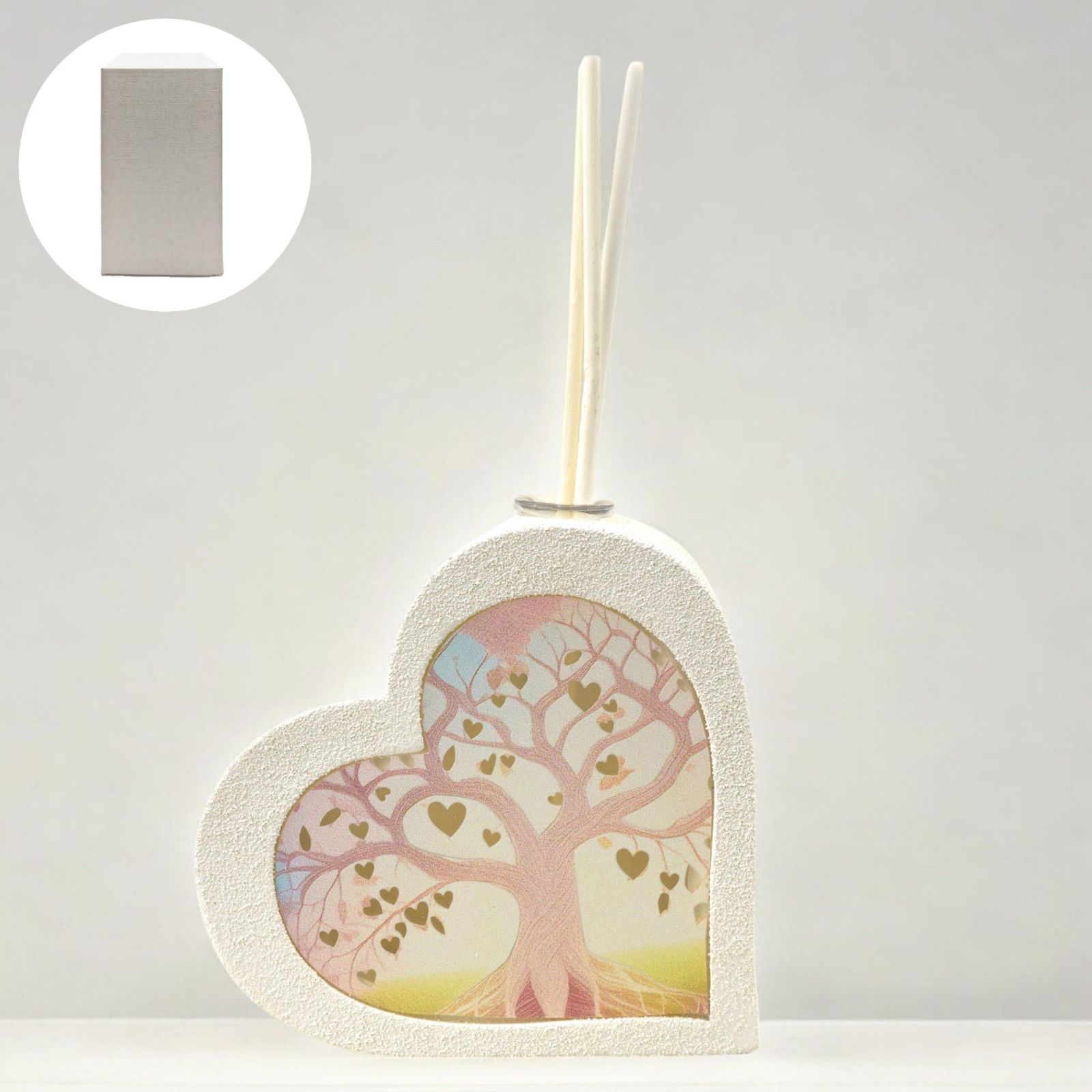 Il diffusore essenza a forma di cuore con albero della vita rosa è un'idea regalo perfetta per eventi speciali come comunione, cresima, matrimonio e anniversario. Le sue dimensioni di circa 10x10x3 cm lo rendono un oggetto particolare e originale da regalare ai tuoi cari.