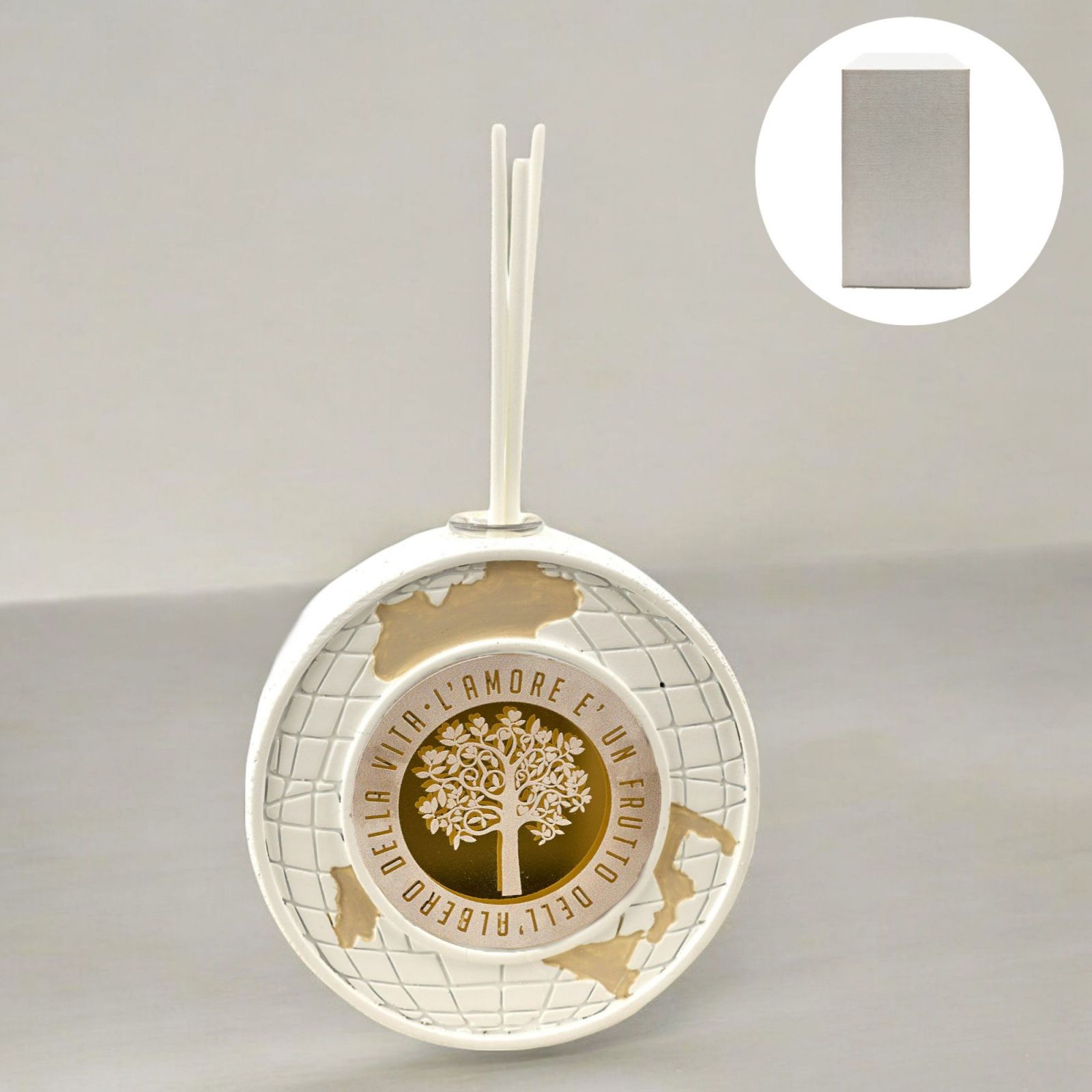Realizzato in resina di alta qualità e con un elegante colore bianco, questo diffusore è pensato per arricchire ogni occasione con stile. La sua forma a mappamondo evoca il desiderio di scoprire nuovi orizzonti, perfetto per chi vuole festeggiare un viaggio che va oltre il fisico, ma anche emotivo e spirituale.