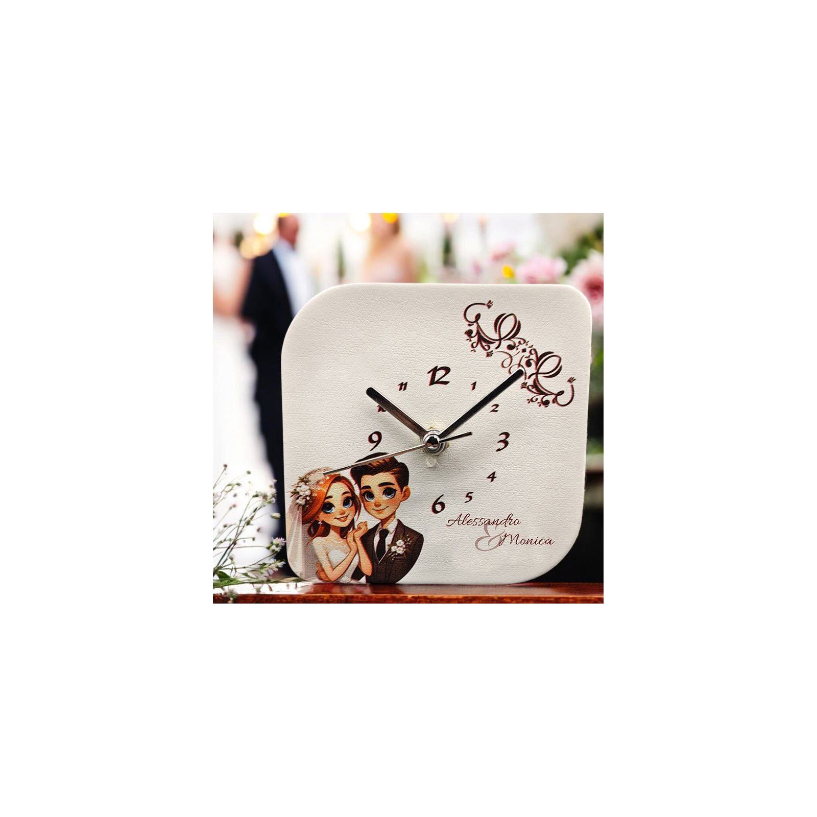 Inoltre, l'orologio può essere personalizzato con le iniziali, i nomi degli sposi e la data del matrimonio, per rendere ancora più speciale e unico questo ricordo.