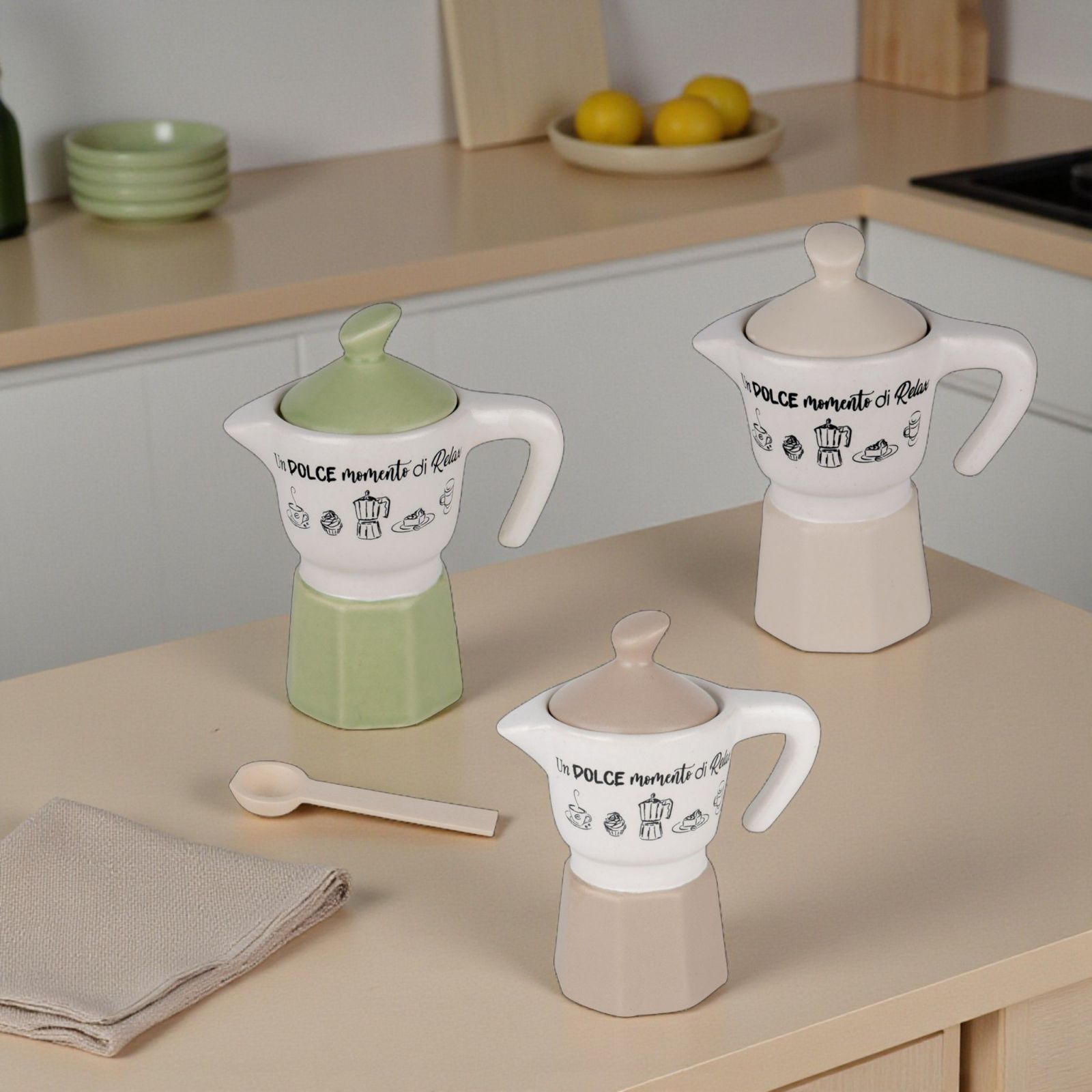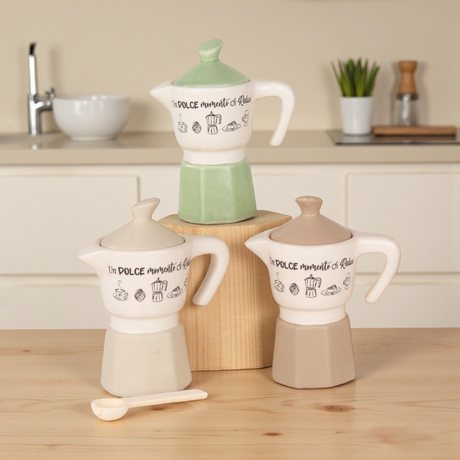Scopri la nostra zuccheriera a forma di moka, un'idea bomboniera originale e utile per rendere indimenticabili i tuoi eventi speciali. Questa bomboniera, decorata con la frase "Un dolce momento di relax", rappresenta non solo un omaggio ma un simbolo di serenità e convivialità. Perfetta per battesimi, comunioni, cresime, compleanni, matrimoni e anniversari, porta con sé un significato profondo, evocando momenti di dolcezza e condivisione.