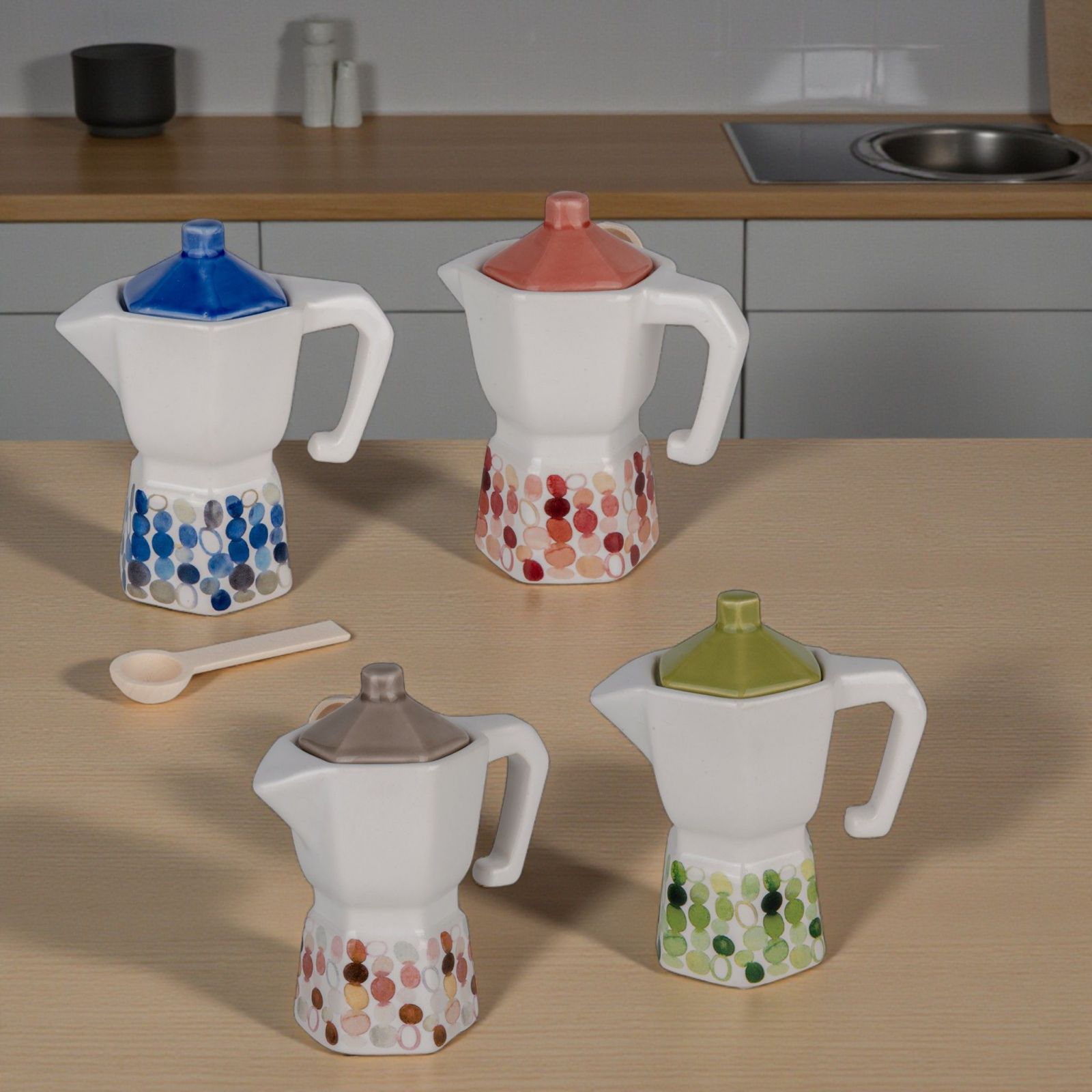 Rendi indimenticabili i tuoi eventi speciali con la nostra zuccheriera a forma di moka, un'autentica bomboniera che unisce stile e utilità. Questo affascinante oggetto, decorato con un motivo puntinato, non solo è un ricordo prezioso, ma simboleggia anche la dolcezza dei momenti condivisi. Perfetta per battesimi, comunioni, cresime, compleanni, matrimoni e anniversari, questa bomboniera è un omaggio che parla di amore e convivialità.